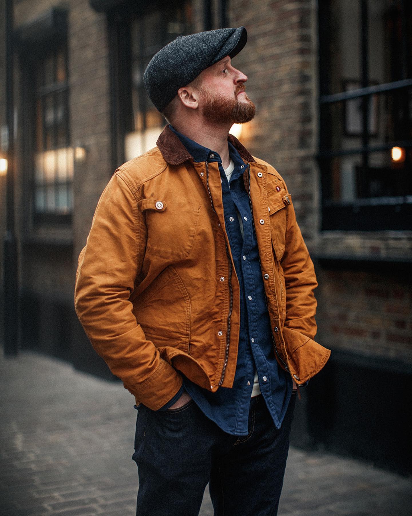 To combat the chill of the evening on a February night, throw on the Black Gold Jacket, a highly functional piece of outerwear that exudes timeless sophistication. Its waxed finish not only protects against the weather but also adds a touch of rugged style to your look.