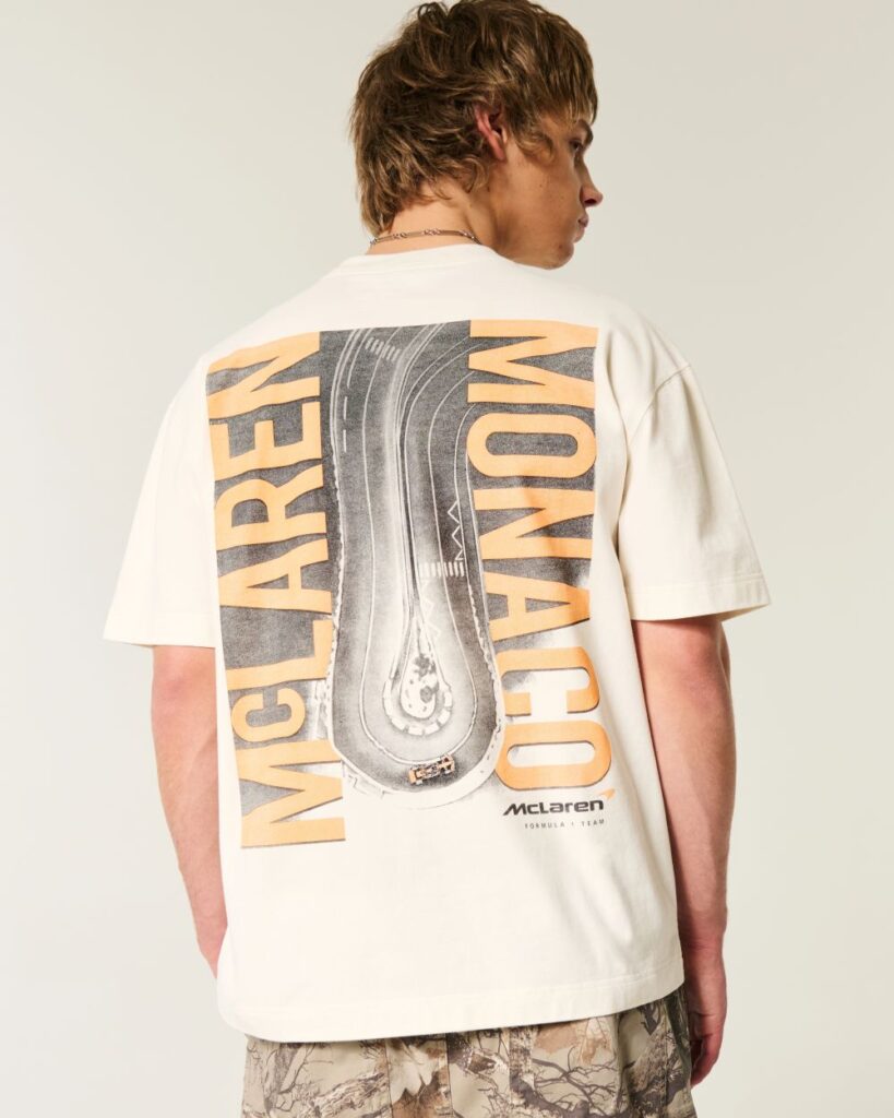 A super soft tee in heavyweight cotton, featuring official licensed McLaren Monaco Racing print graphics at the left chest and back. Crew neckline, short sleeves.