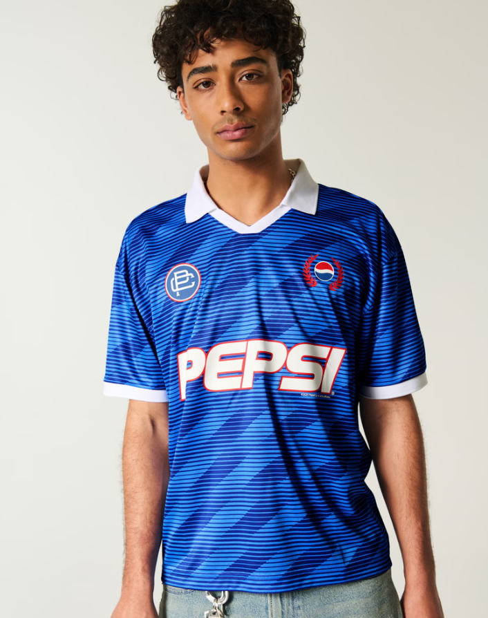 A classic soccer jersey in soft, sporty fabric, featuring official licensed Pepsi graphics. Number graphic at back, short sleeves, collar. Boxy Fit.
