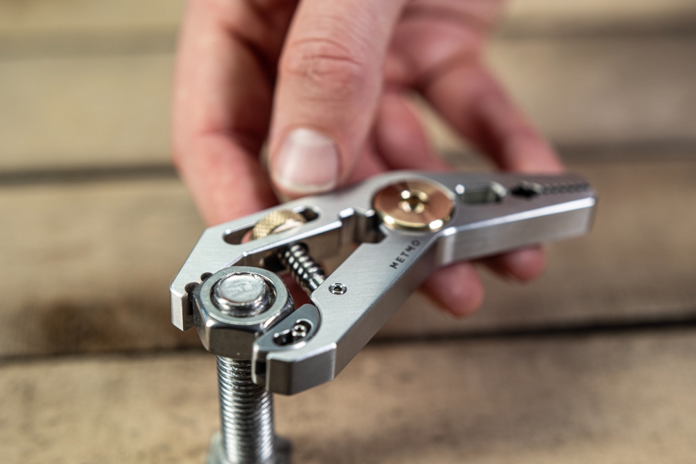 So, what exactly does this pocket powerhouse do? The MetMo Pocket Grip flawlessly combines a parallel wrench, clamping pliers, a hex driver, a tap, and a heavy-duty vice into one remarkably thin, palm-sized profile.