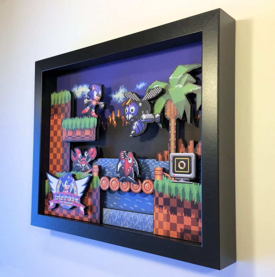 If you’re similarly enamoured by the likes of Pac-Man, Sonic the Hedgehog and Space Invaders and have got some irksome blank space on your walls in desperate need of filling, these GlitchArtwork Video Game Shadow Boxes are certainly going to be right up your street and will fill your heart with retro video game goodness every time you look at them.