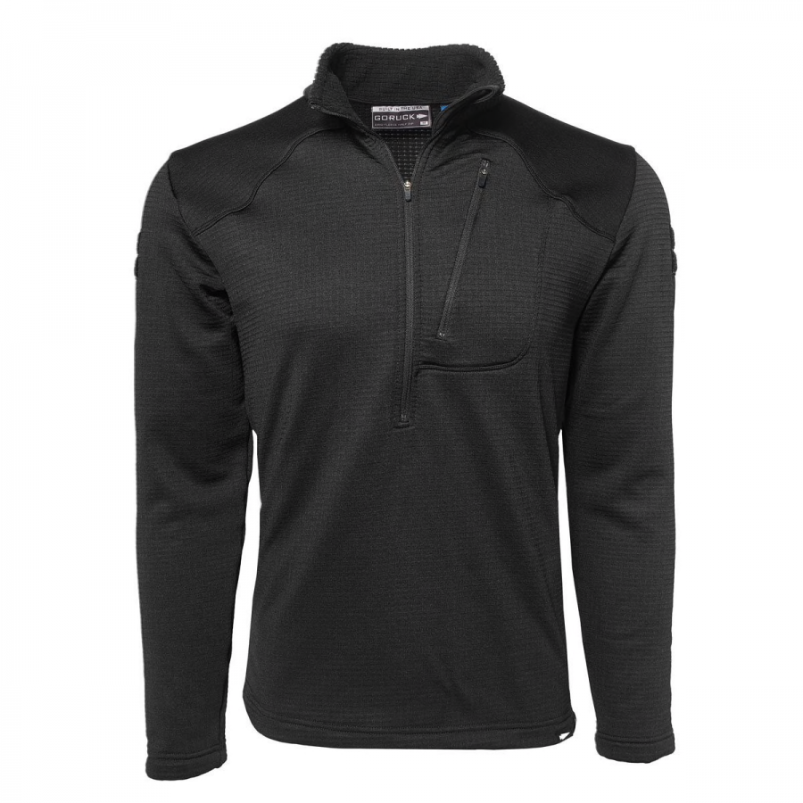 There are some great design elements to be found within this Goruck Grid Fleece Half Zip which act as the catalyst for its performance and popularity amongst the outdoors inclined. Some of the most useful design features of this superb piece of outerwear includes a lock down zipper, zippered chest pocket, velcro spot on sleeve to add your own patch and long sleeves to help keep the elements at bay in the colder months of the year.
