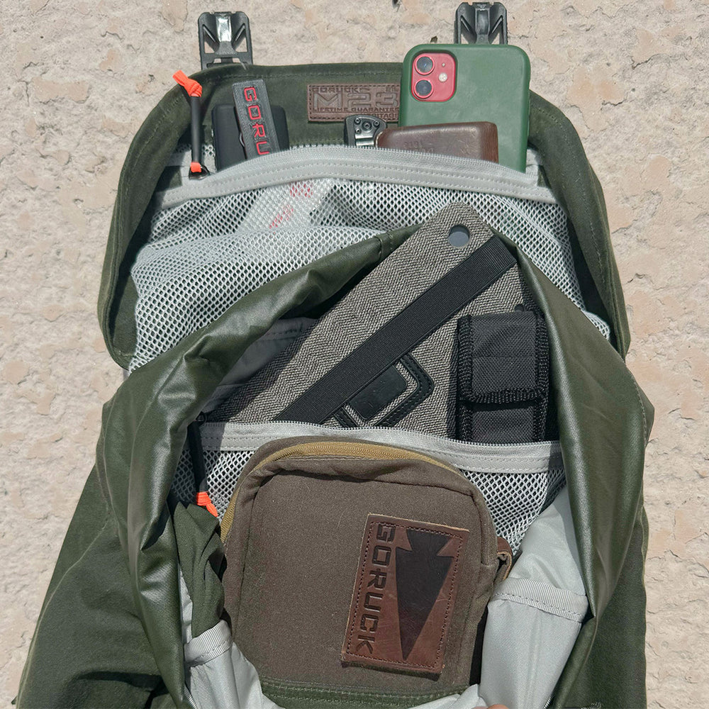 Additionally, the bombproof laptop compartment, strategically placed next to your back, is extra-reinforced and includes a false bottom. This design ensures that when you set your ruck down, your laptop remains protected and undisturbed. Similar to the M1945 which had external pockets for quick access to weapons and supplies, GORUCK’s awesome M23 Ruck has multiple exterior pockets for quick access to items like waterbottles, phones and other EDC essentials.