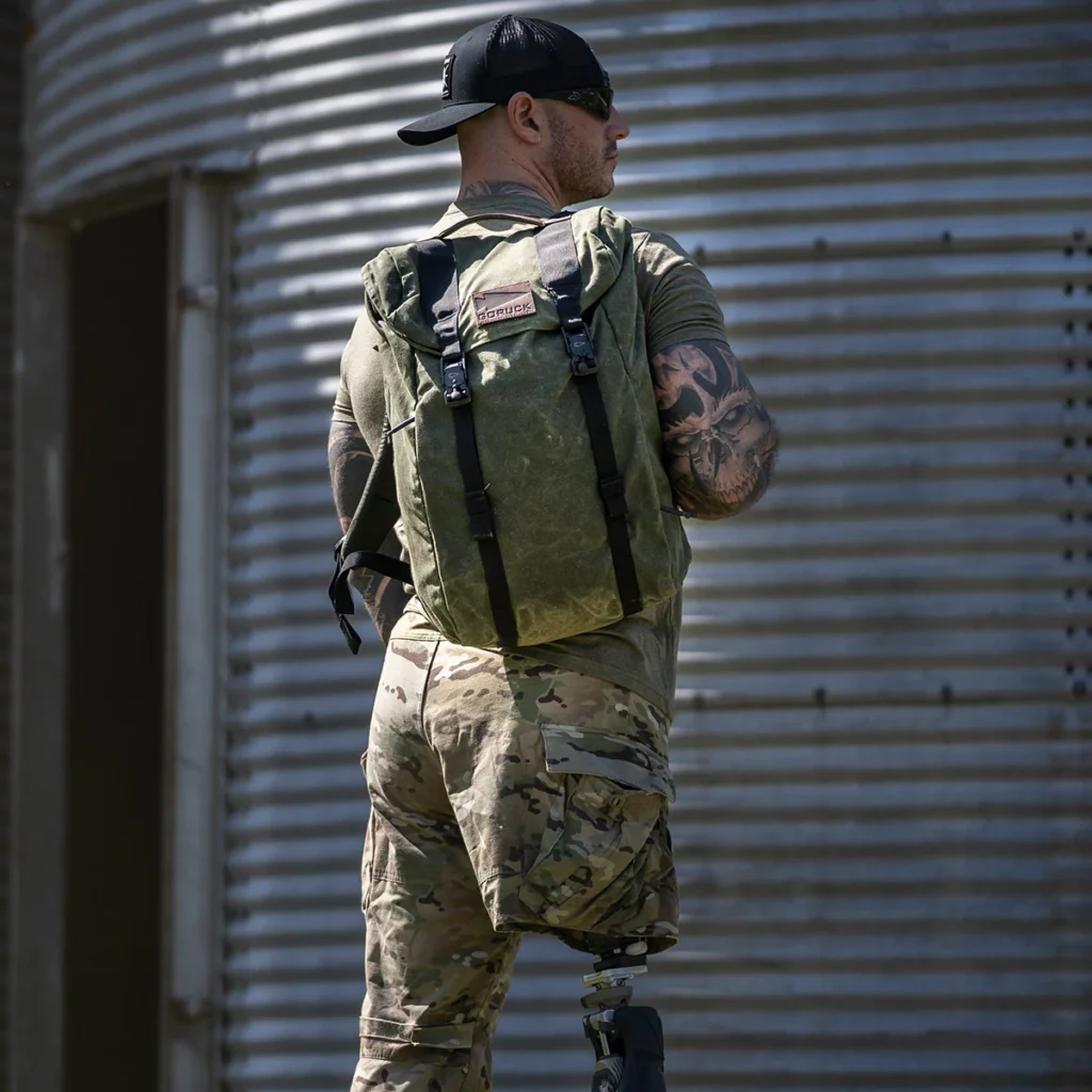 GORUCK’s inclusion of the M23 in this collection was essential because the design of the ruck draws inspiration from the original M1945 Field Packs that were manufactured and used during that era. GORUCK has embraced the features they admired most about these packs: the top load, exterior pockets, and front buckles, and incorporated them into a modern rucksack.