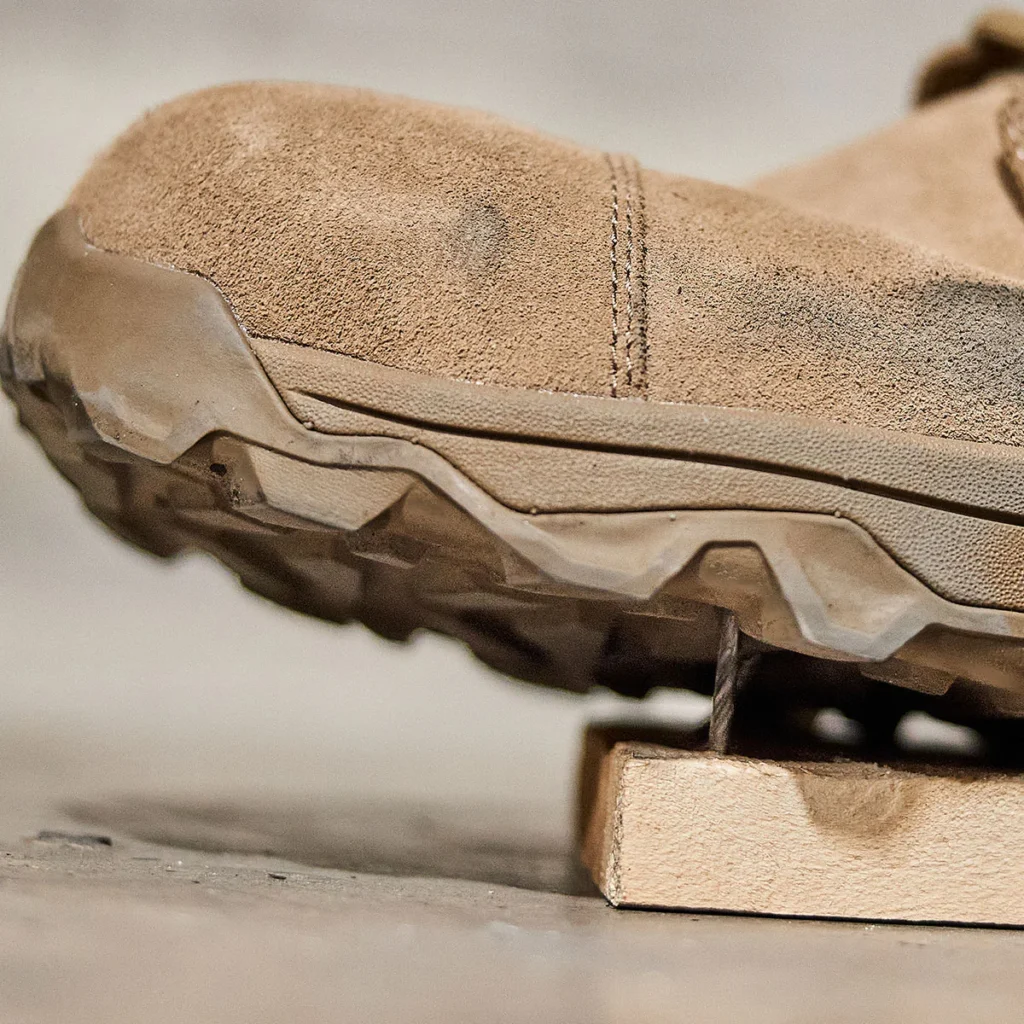 One of the standout features of the MACV-2™ Safety Boot is its Dyneema puncture-resistant sole. This ensures that the boot is nail-proof, providing peace of mind in hazardous work settings. The upper of the boot is crafted from premium materials, including hard-wearing suede and 1000D CORDURA®, which improve with time and use. The perforated foam padded upper adds an extra layer of comfort, keeping the boot lightweight and breathable while protecting against minor impacts and scuffs.