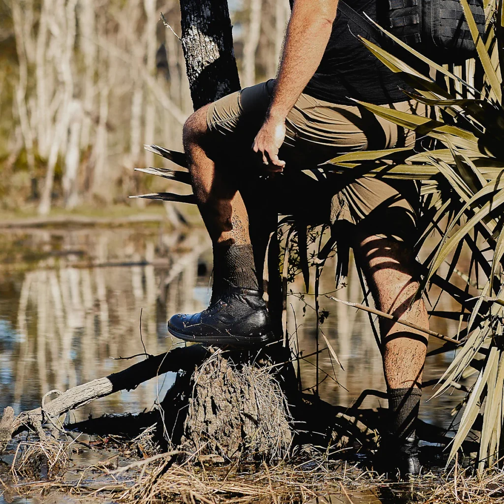 Comfort is paramount, and these socks deliver with a deep heel pocket and contoured fit that hugs the shape of your calf. Robust cushioning in high-impact areas absorbs shock and adds comfort, while extended arch support ensures a secure fit that doesn’t slip over time. The smooth toe seam and mesh vents further enhance comfort and ventilation, making these socks a perfect companion for long rucks or daily wear.