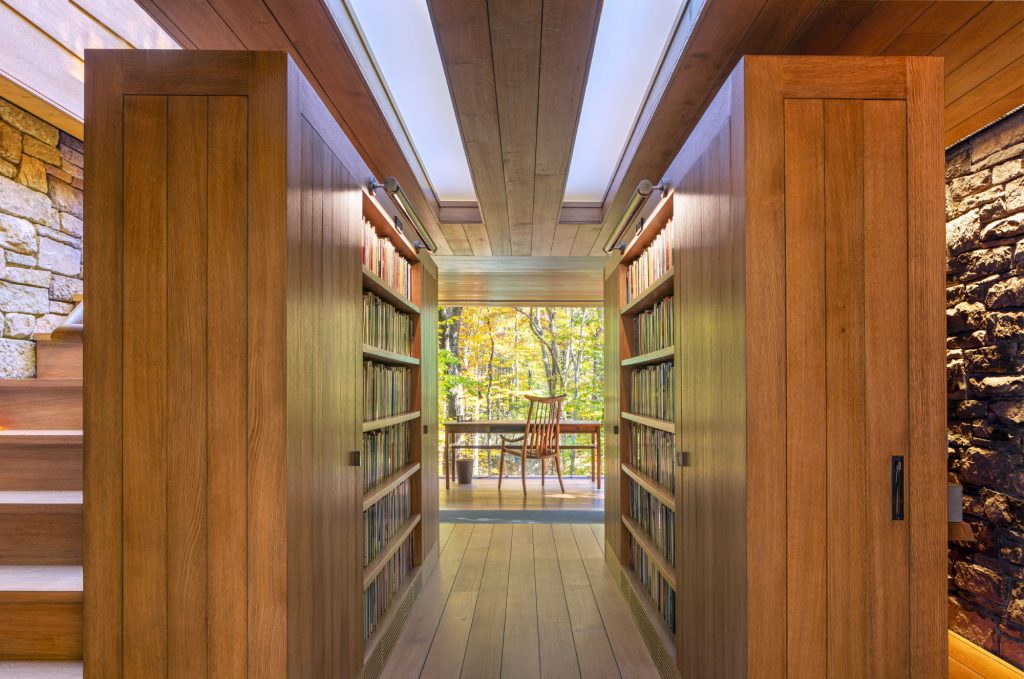 The Greenwich Writer’s Studio was built several hundred yards away from the main home of the client and his wife. The poet turned to New York architect Eric J Smith to deliver a relaxing space where he could read and write, while nestled within the trees. The client also required plenty of extra room in the Writer’s Studio for his 1,700-volume poetry collection which, needless to say, takes up quite a bit of space.