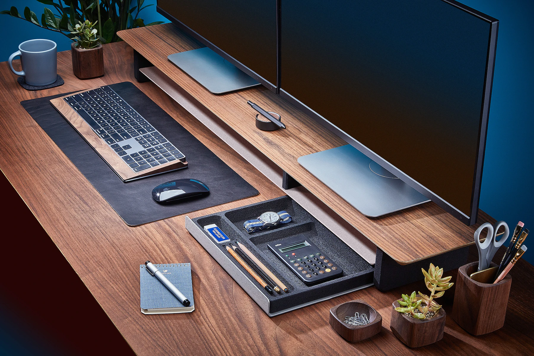 Perfect for bringing a sense of clarity and intention to your workspace, you’ll wonder how you got by without these Grovemade Desk Shelves in your work life previously. It gives you a much better handle on the age old problem of desk clutter, and a place for everything you need to work efficiently, from No. 2 pencils to dual monitors and power banks.