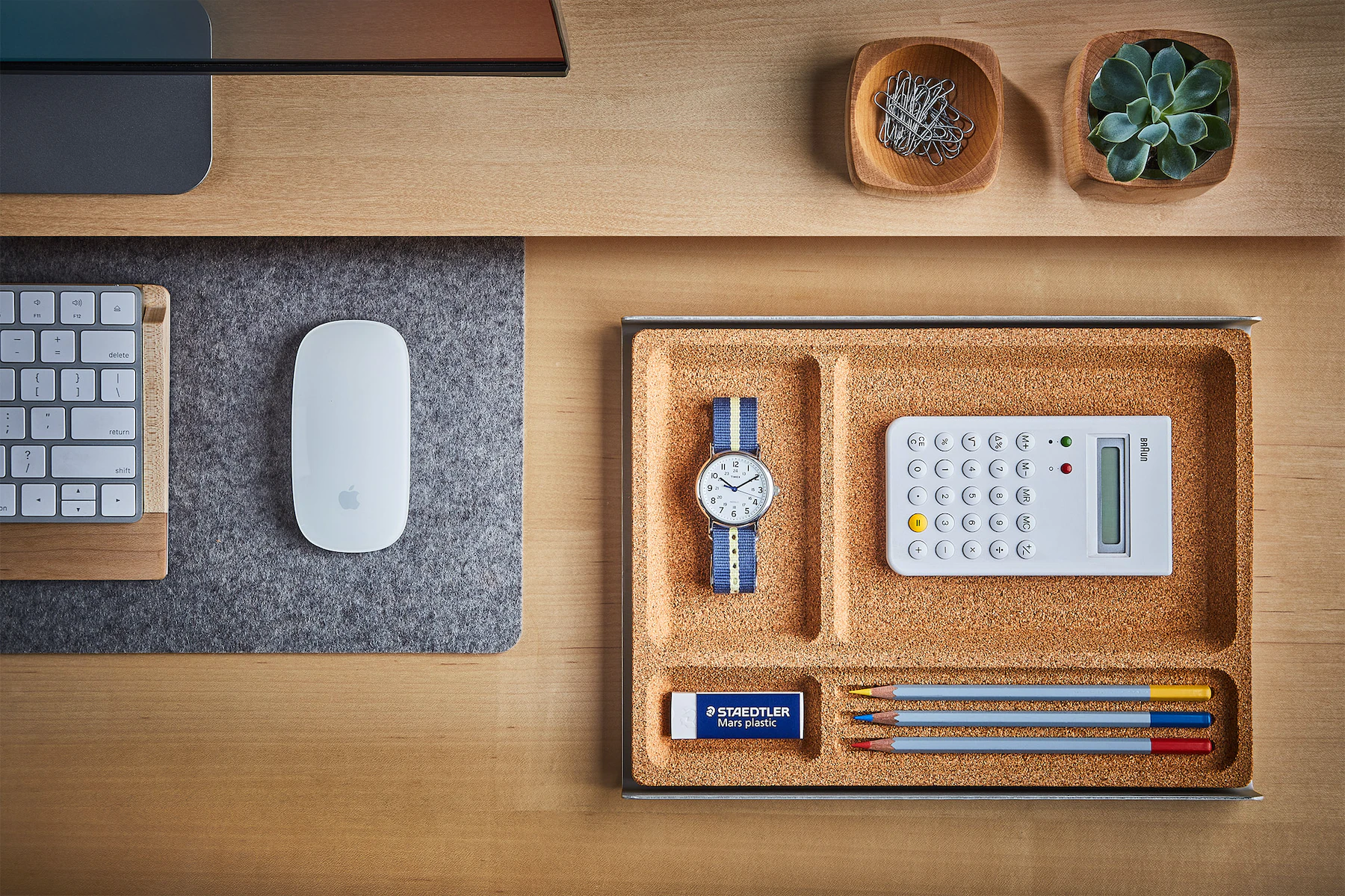 Boasting subtle organisation zones to help everything on your desk live in harmony, from your keyboard to your knick-knacks, these Desk Shelves will streamline your day to day and make you much more productive in the process. This minimalist but magnificent workspace accessory from Grovemade provides the pieces, you provide the arrangement—whether a medium shelf and laptop riser, or three small shelves and a desk pad in a cozy cocoon of productivity. The choice is yours.