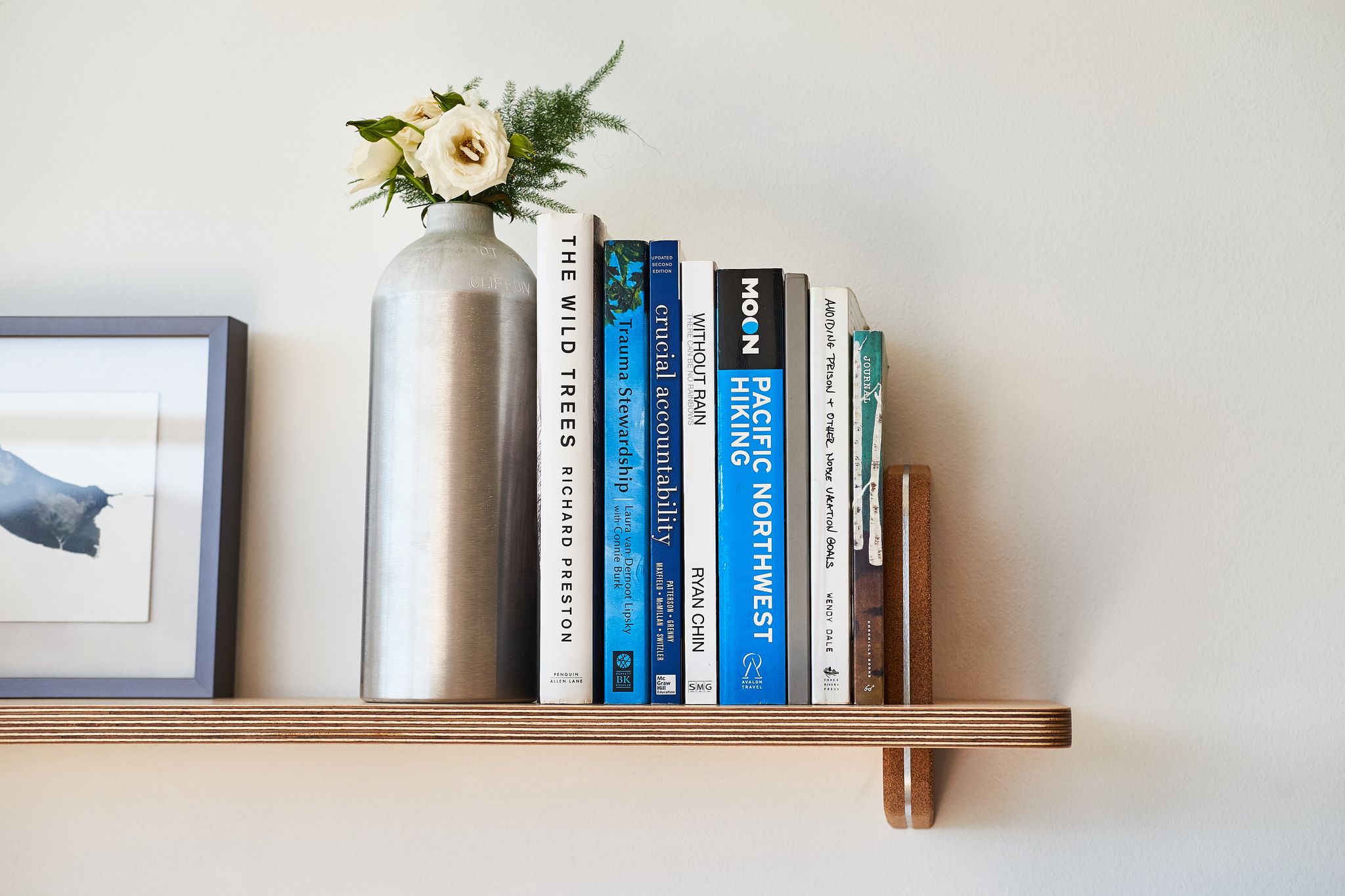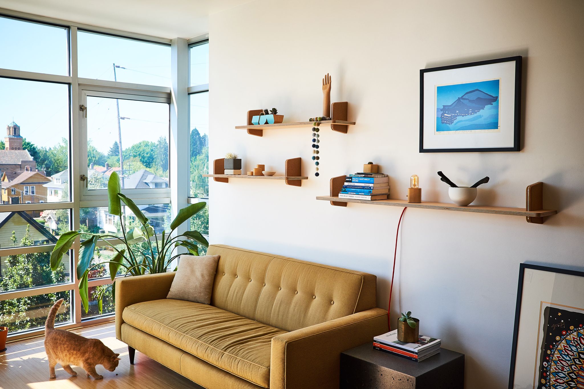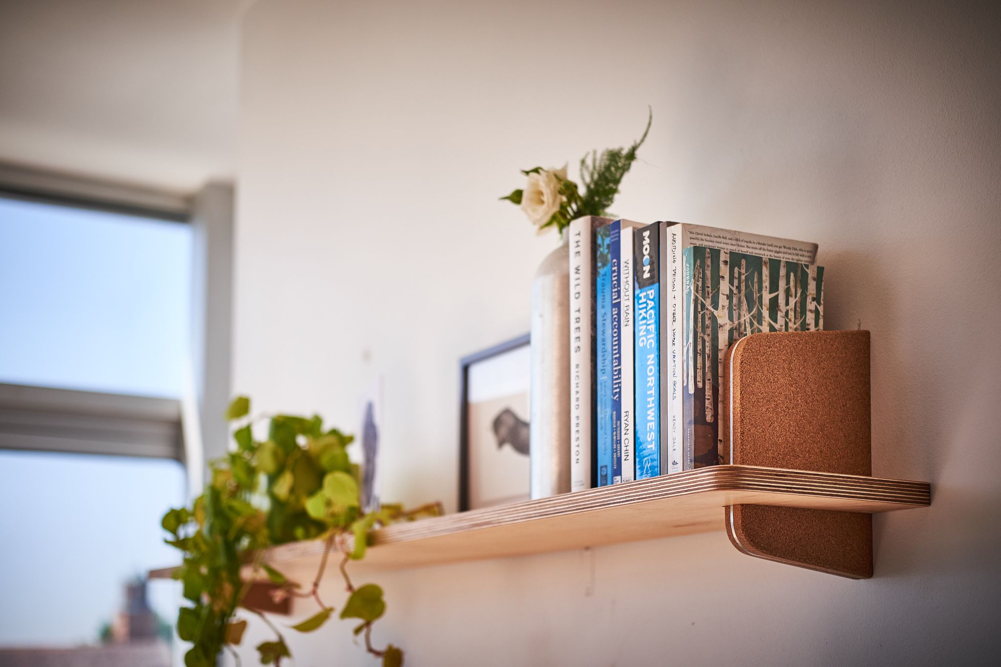 Grovemade wanted the shelf and bracket to magically intersect, without compromising on the strength of the hold. A typical lap joint would have substantially weakened the bracket—instead, they precision machined a hidden bumpout in the wood shelf that notches into a matching slot in the bracket, to make a super clean and super strong joint that gives the shelves an almost floating visual impact that will turn heads aplenty.