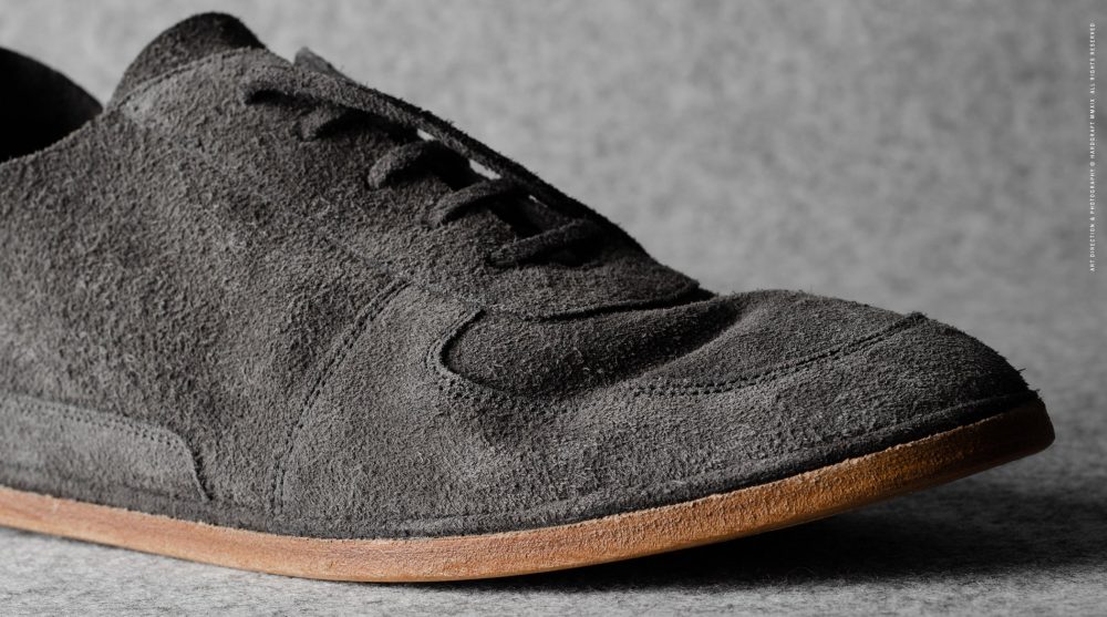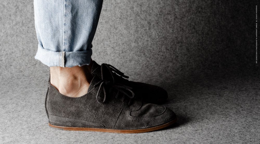The Hard Graft Pure Suede Shoes in Grey (€390) require highly skilled artisans and shoemakers to deliver the quality of finish which is on show here. There is no shortage of craftsmanship skill needed to create a pair of sneakers that look so uncomplicated and effortlessly casual. Only sticking to key detailing that turns what could be a simple shoe into what Hard Graft really believe is a really exciting design of both form and function.