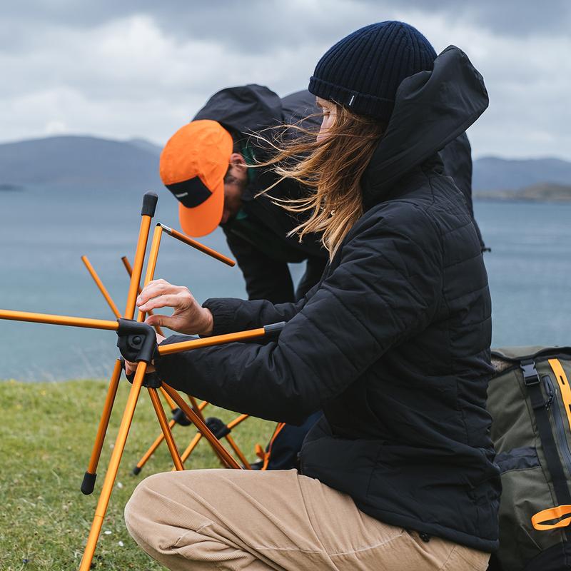 The Helinox x Finisterre Chair (£125) uses a green anodisation technique that has been developed by DAC and deployed on this chair. It is an environmentally friendly means of anodising the aluminium poles that eliminates nitric and phosphoric acid from the process, which in turn minimises the environmental damage and improves the overall working environment.