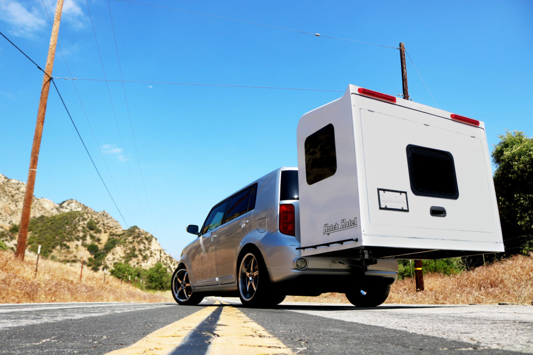 Hitting the road for adventure is something that a lot of people will be thinking about right now and if you’re the impulsive sort that doesn’t want to plan hotels and what have you and would rather just set off and see where the road takes you, you might just want to sit up and take notice of the Hitch Hotel, which is funding on Kickstarter now, and is basically a portable hotel room that your car wears like a backpack.