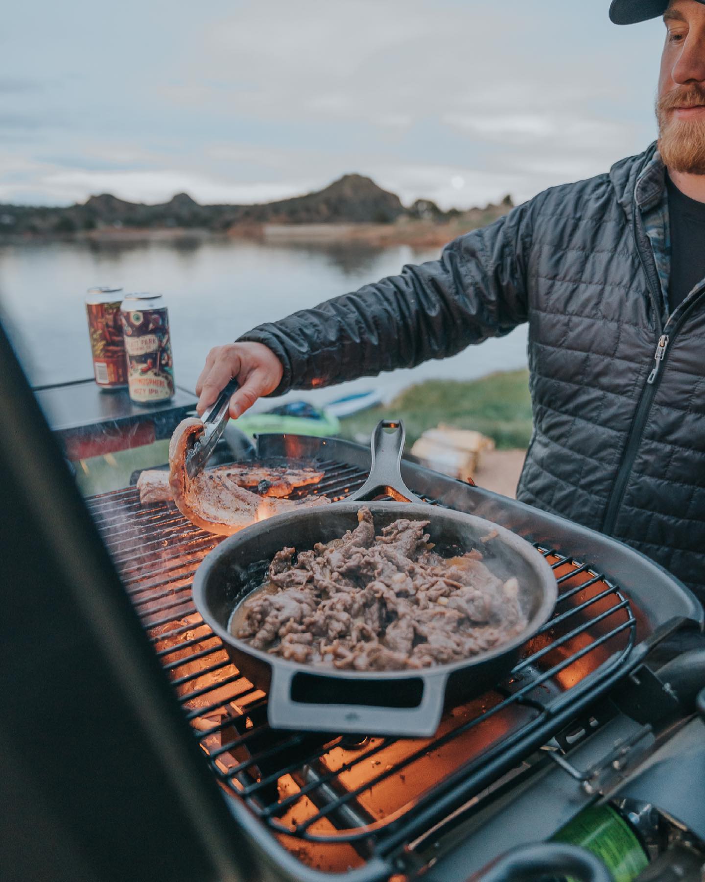 Versatile, robust, and straightforward to use, this excellent looking and top performing grill will be a permanent fixture in your adventure kit from the first time you put it to use. It has an anti-theft padlock and hood latch so it’s always there when you get back to the parking lot and fold-out prep tables on both sides with accessory rail to hang tools on. Grilling perfection.