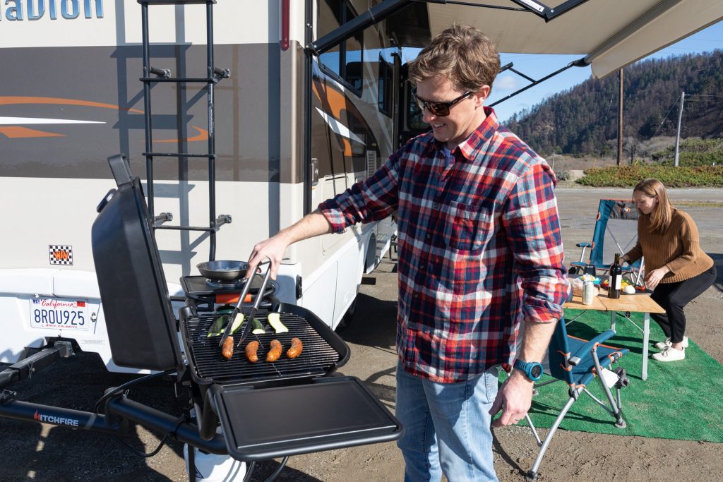 Ever pulled up in some scenic spot and wished you could cook up a storm and appreciate the view? Well, with the HitchFire Forge 15 Trailer Mounted Grill you can do exactly that. It has two burners that put out 7,500 BTUs each with built-in igniter and boasts an impressively spacious grilling area that feeds 8-10 people.