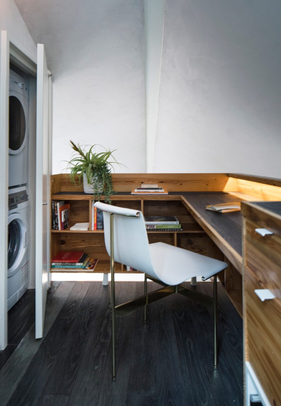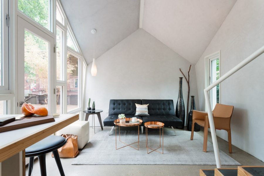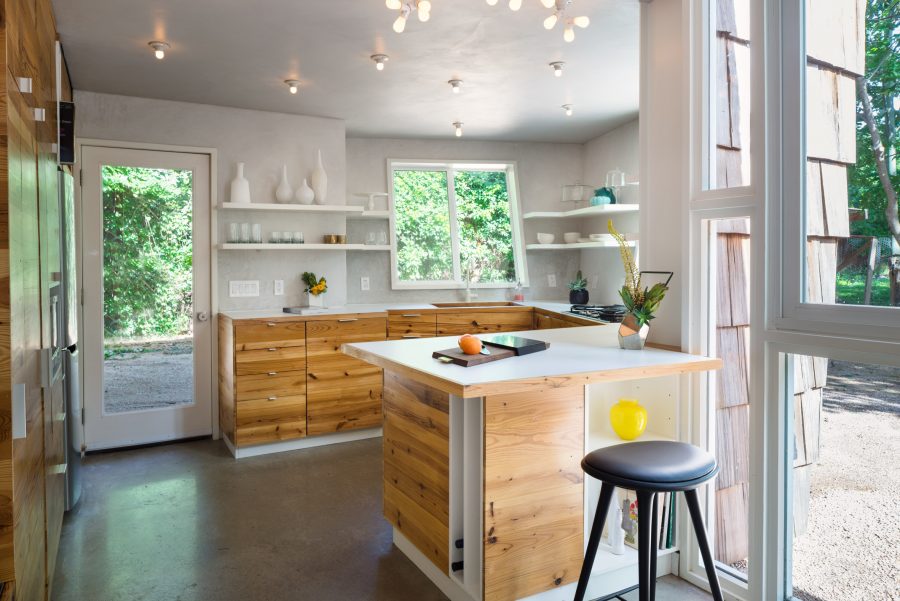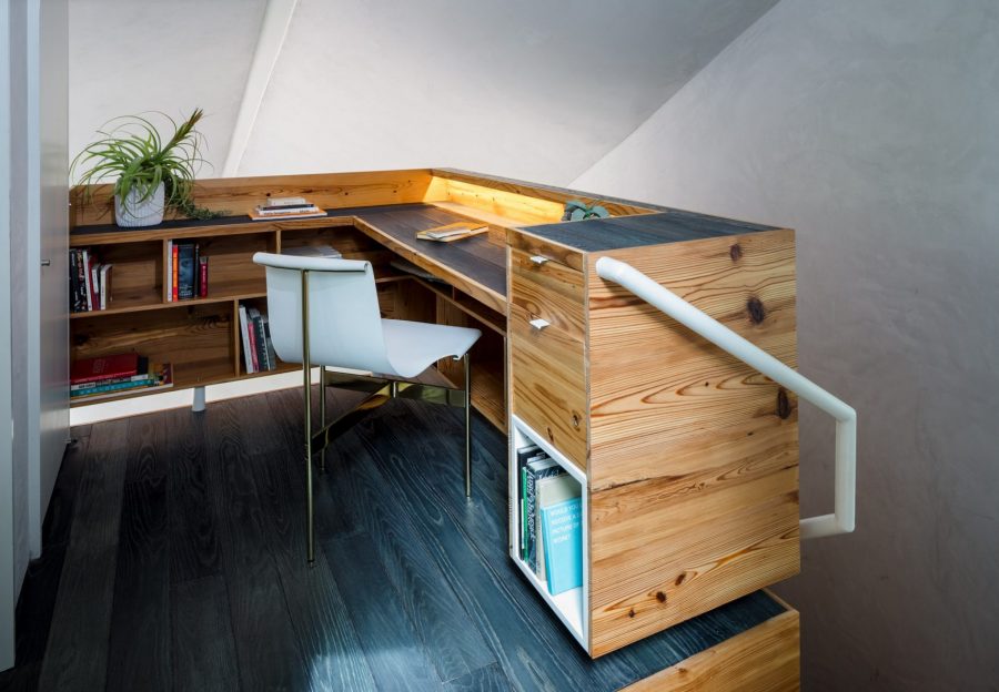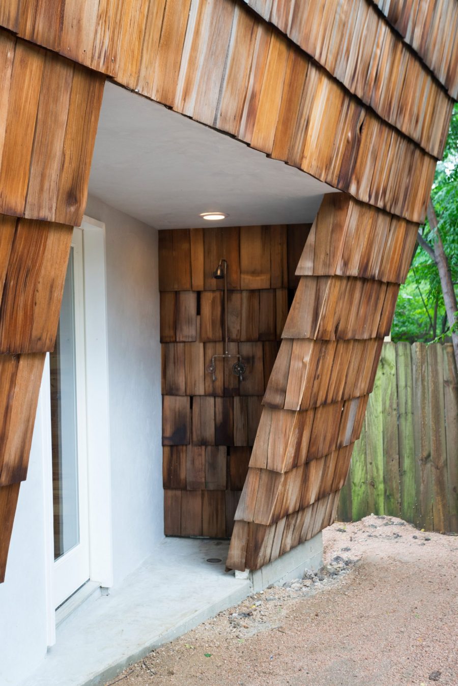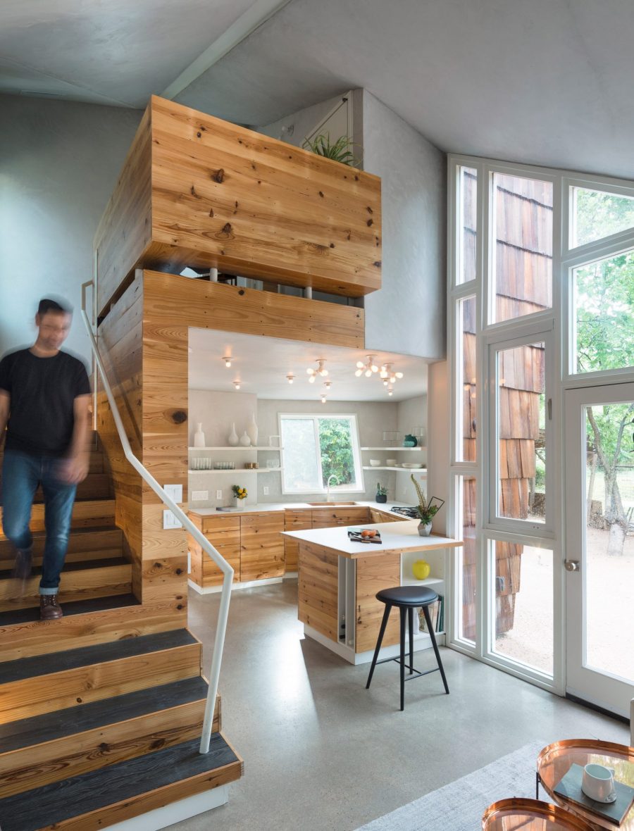 The Hive Guest House from Studio 512 is undoubtedly one of the most unique looking structures in Austin and it boasts angled walls which have been clad in oversized shingles for a highly striking visual impact. The are also a variety of interior spaces that narrow and widen based on how they are used to add a real sense of space to the interiors that you might not expect when viewing the property from the outside.