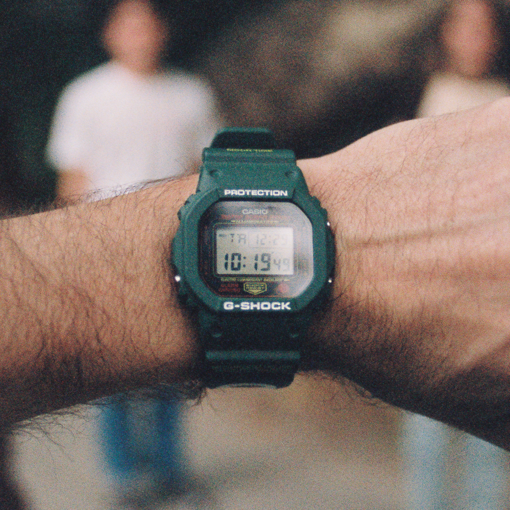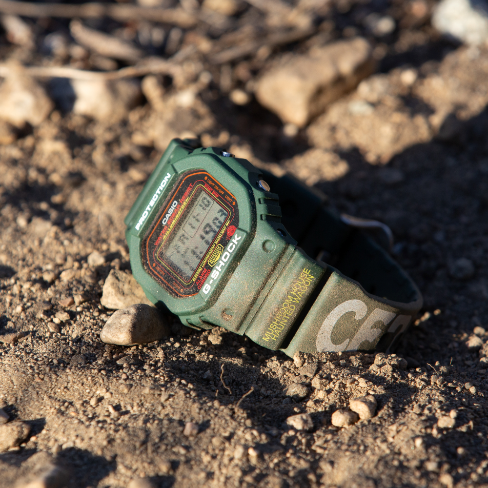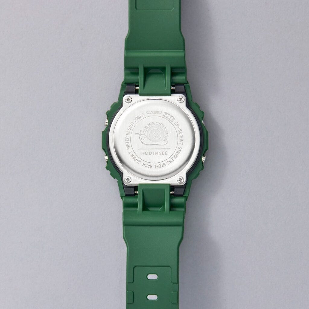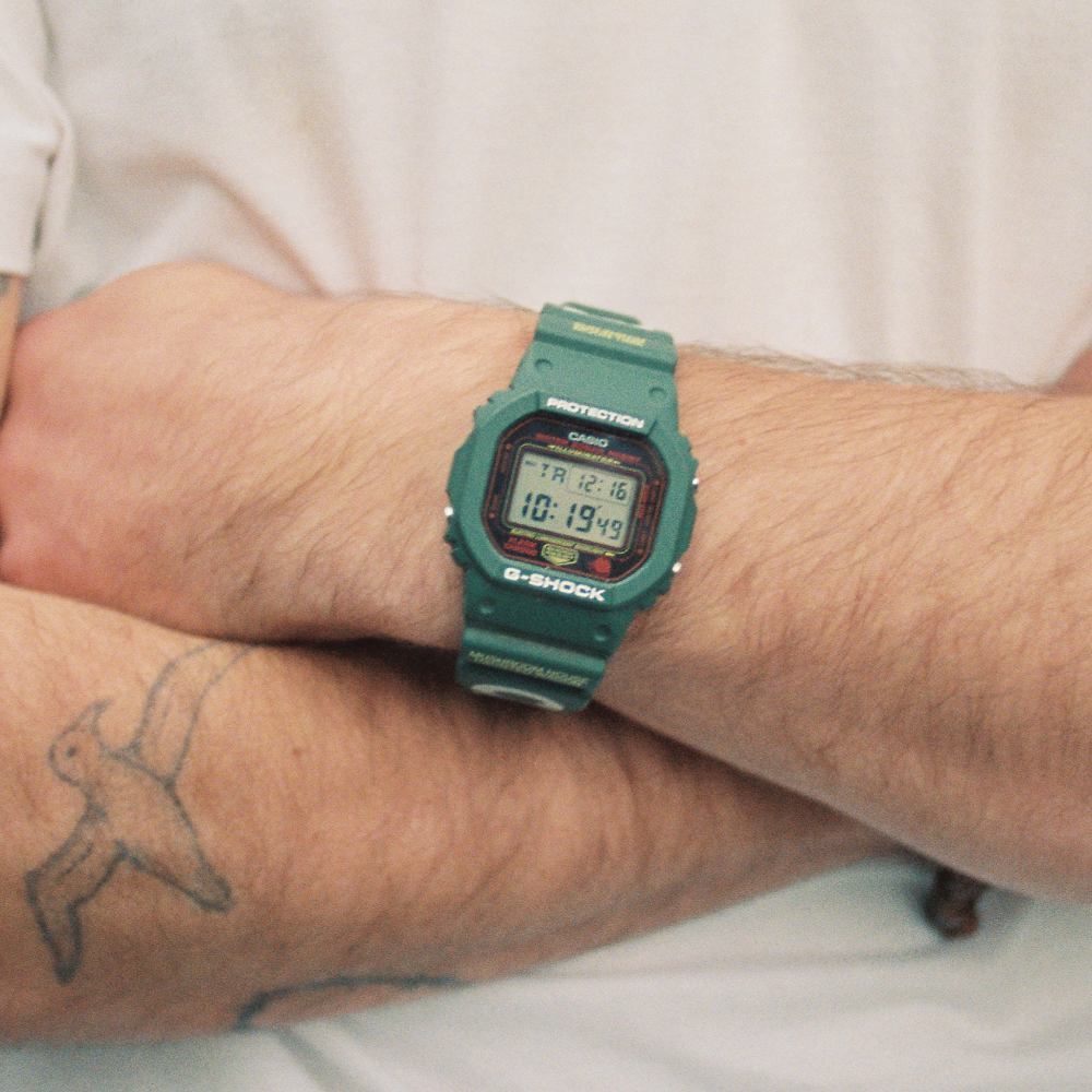 Renowned for their Dead & Co T-shirt designs, Online Ceramics was founded in 2016 by Elijah Funk and Alix Ross. The brand’s website and endlessly creative, ever-evolving creations have carved a unique path for Online Ceramics, forming a perspective that has helped to create a truly one-of-a-kind, effortlessly cool, and playful take on the G-SHOCK 5600 for Hodinkee. The 5600 is definitely the most mainstream and easy-wearing model that G-SHOCK has produced and serves as the ideal canvas for the creative, almost altered-state beauty of Online Ceramics.