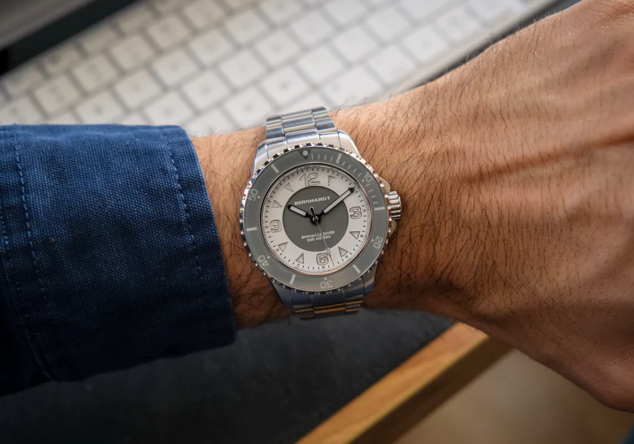 Every element, from the beveled lugs to the solid end links, speaks to the thoughtfulness behind the design. The Bernhardt Watch Co 20th Anniversary Diver is listed at $1,150, an investment that secures a genuine slice of independent watchmaking history.