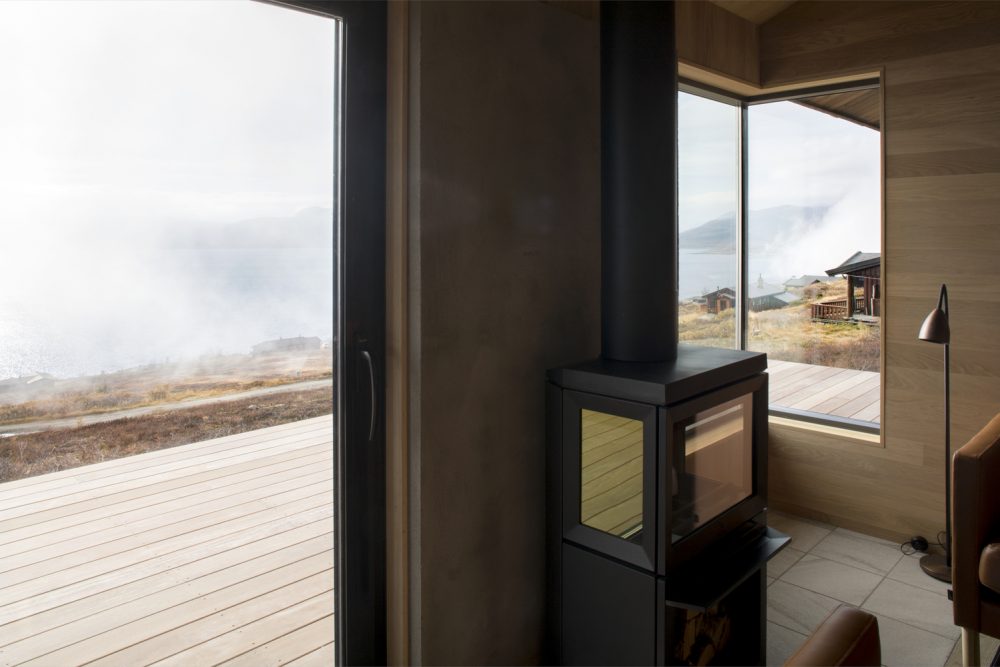 Designed to be both robust and efficient, the Hooded Cabin definitely ticks both these boxes and the architects have done an excellent job of creating a contemporary looking structure in what can be a quite inhospitable environment. Boasting magnificent lake views courtesy of the property’s orientation, the Hooded Cabin has panoramic, divided corner windows and large sliding doors at the front of the property which bring the nature close into the kitchen and living room.