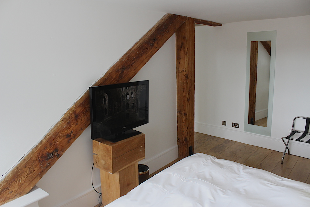 The exposed beams throughout the different rooms in the suite really showcased the building’s past and did a great job of indicating what an extensive and sympathetic renovation job has been carried out on the building to deliver such a luxurious and well-appointed hotel today. Everywhere you looked around the room was filled with neat little touches and top of the range accessories and technology including 42″ Phillips Ambilight Smart TVs in the living area (again with Sky Sports, much to our delight) and bespoke furniture crafted from oak and walnut dotted around which added extra aesthetic appeal and functionality to the space.