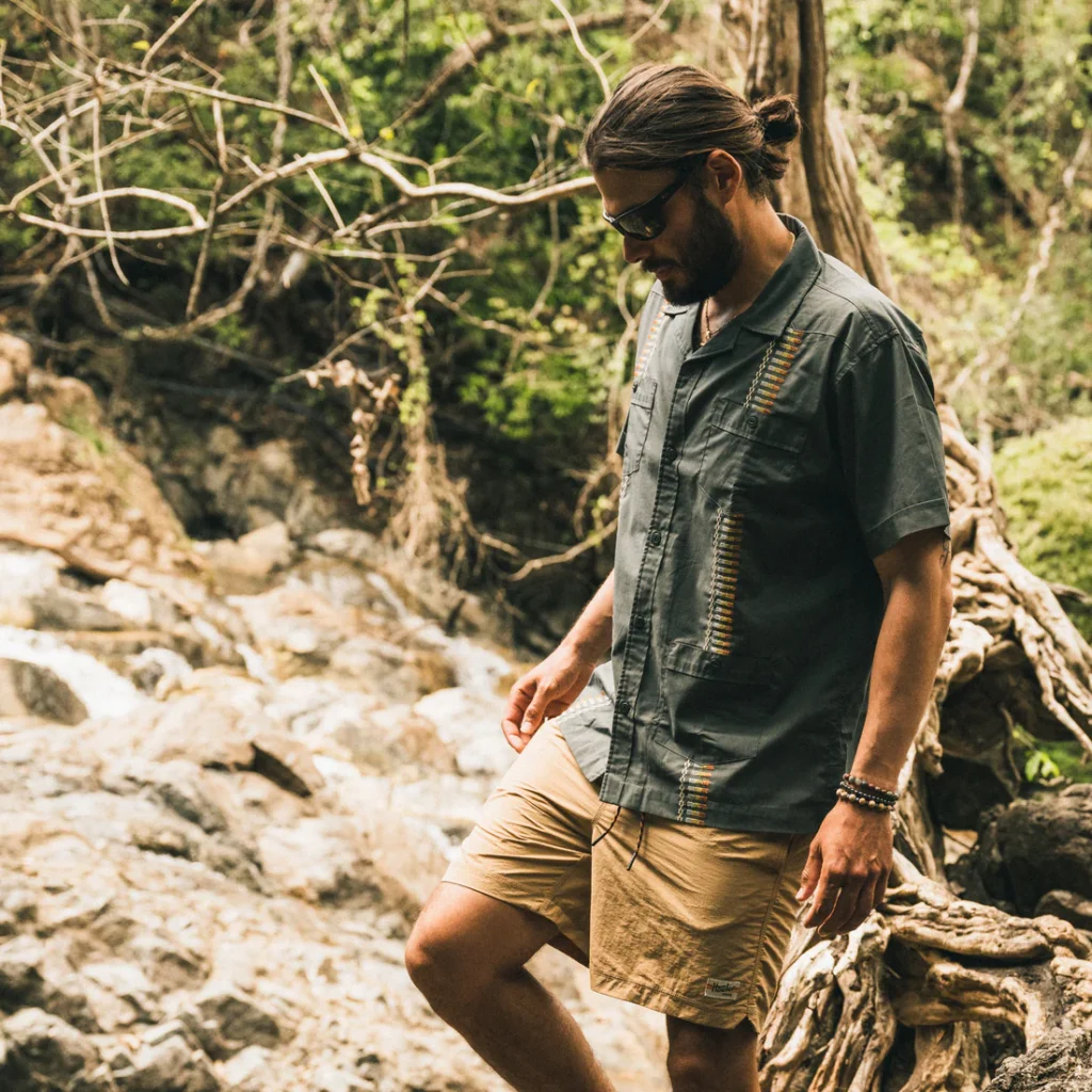 HB love reinventing traditional garments and one of their favourite platforms for reinvention is the Guayabera. They’ve given it a mesh lined vented back yoke, totally unique embroidery, technical cotton-poly stretch fabric that dries quickly and enlarged pockets for convenient beer storage so you can take your turn throwing washers.