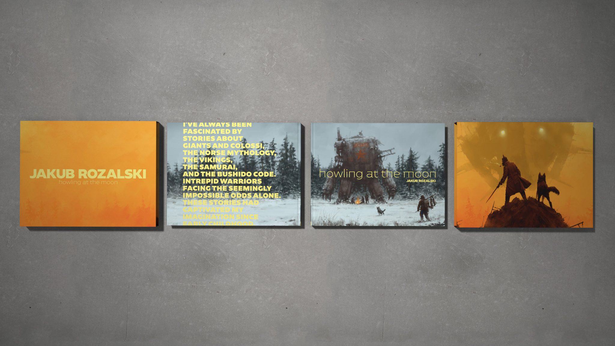 A lot of attention to detail has gone into the design of the Howling at the Moon Book from Jakub Rozalski and renowned Director and Designer Brent Ashe has been responsible for creating every element of the book’s presentation in order to make it an art experience you’ll not be able to get enough of.