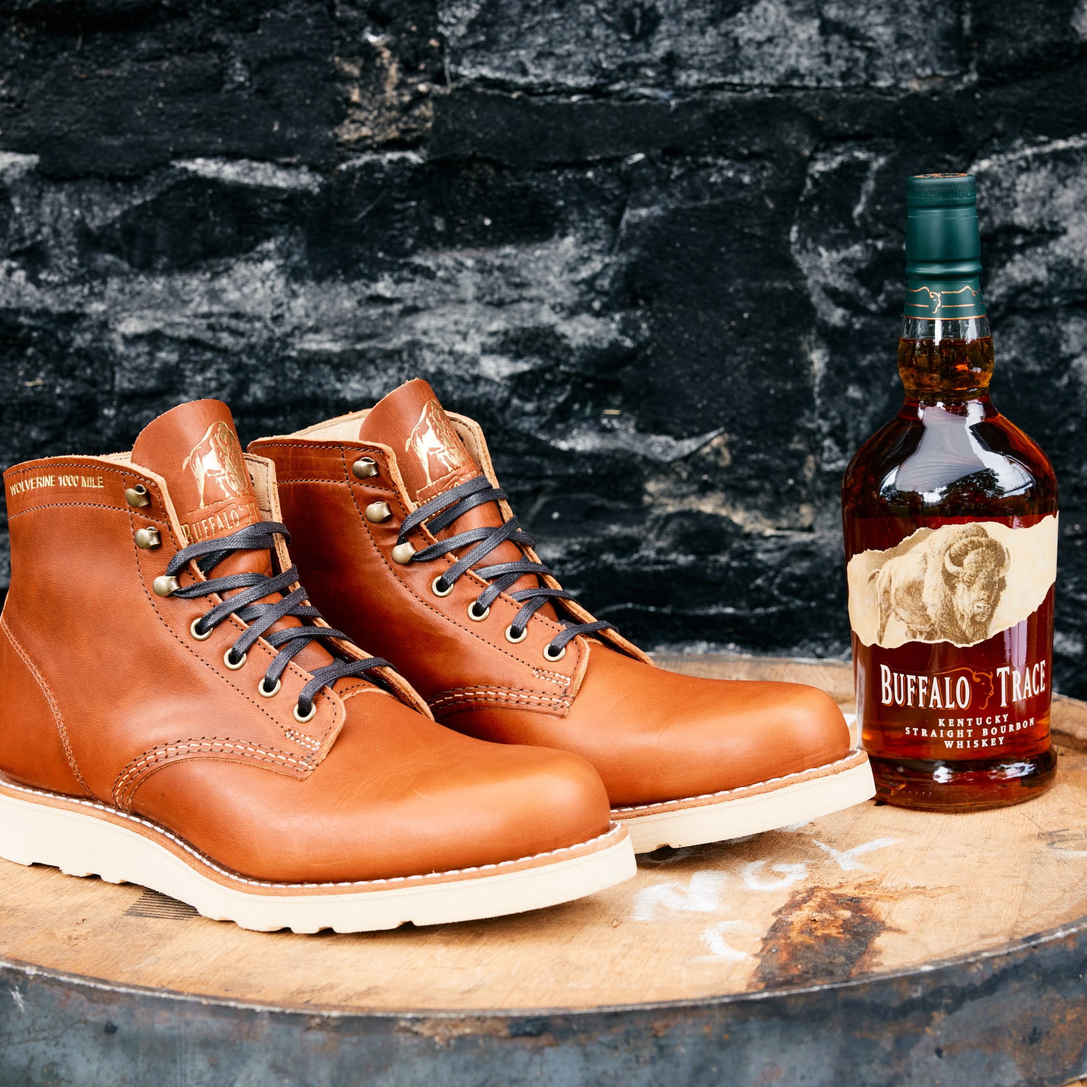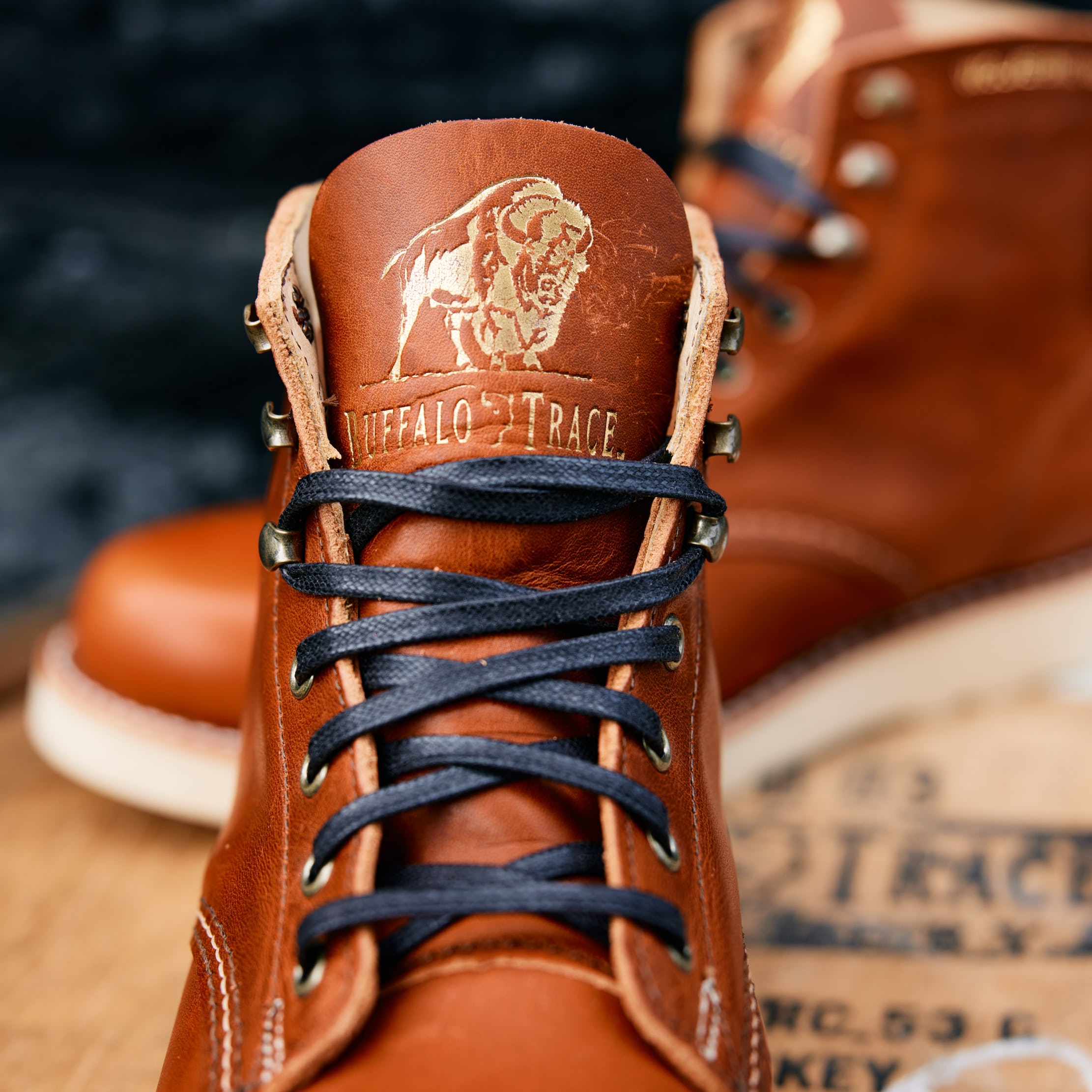 These Huckberry x Buffalo Trace 1000 Mile Boots have the time-tested Goodyear™ Welt construction which is durable, flexible and allows the boot to be resoled for years of wear. Each pair comes with “Wolverine 1000 Mile” gold foil stamp on collar and the Buffalo Trace logo gold foil stamp on tongue. These are the sort of boots you can feel good about buying as they are designed in Michigan and handcrafted in Arkansas, supporting American workers and manufacturing.
