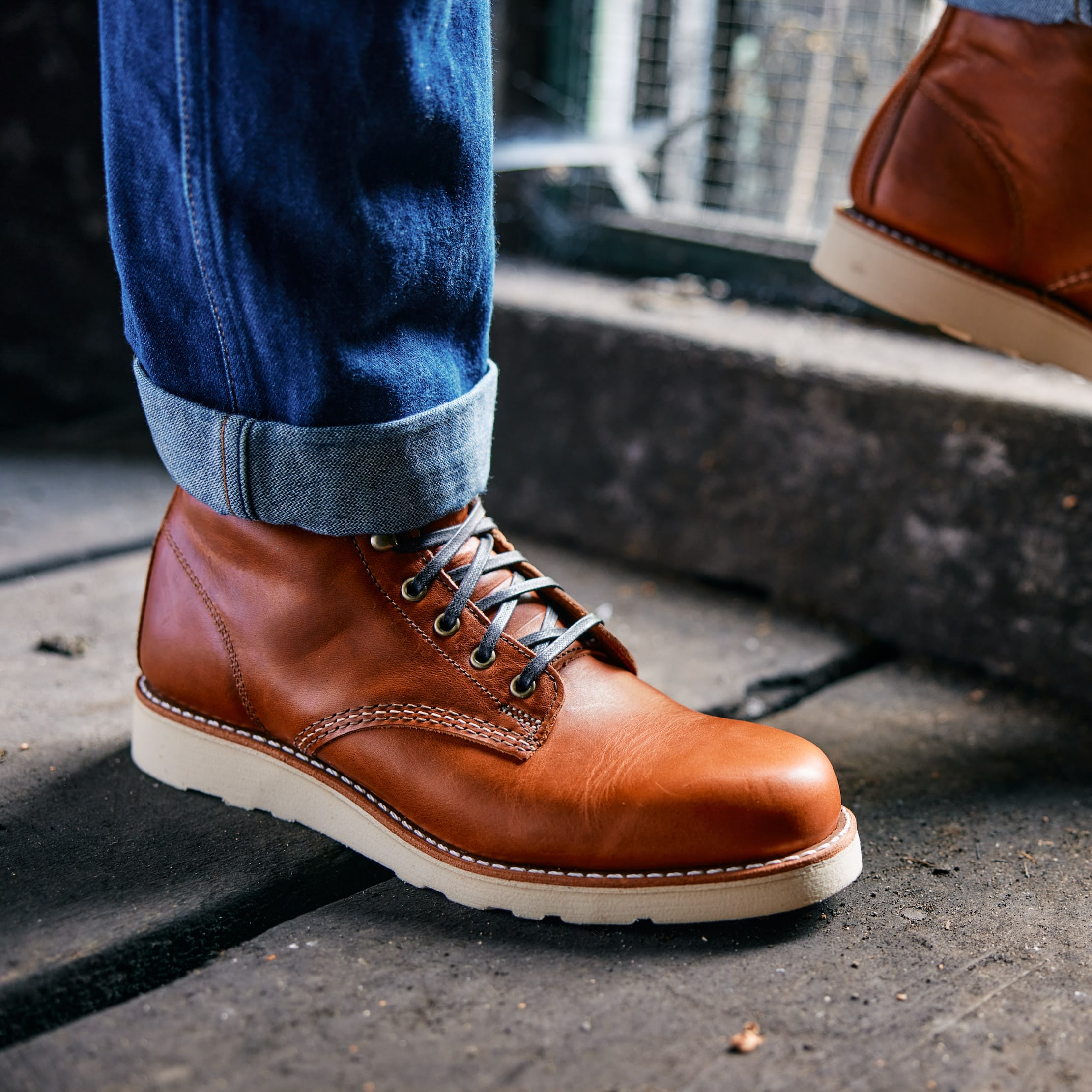 This is a custom Buffalo Trace collaboration on a limited edition boot, only available at Huckberry so you’ll be in exclusive company if you bag yourself a pair of these first class boots. The upper is crafted from premium English Dublin Tan leather from Horween Leather Company in Chicago, Illinois and each pair boasts a classic wedge outsole from Sullivan, Missouri. Two sets of laces are included: flat waxed cotton and rawhide laces so you can change up the aesthetic of your boots every now and then.