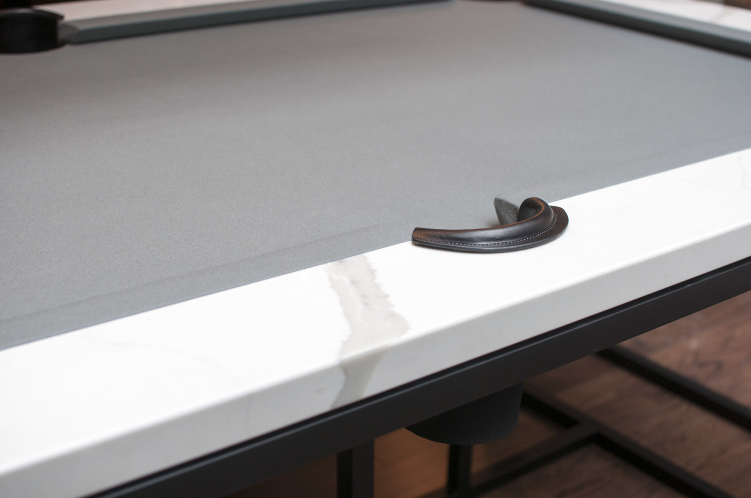 Phenomenally well crafted, the HWG Pool Table adds to the Calcutta marble with stainless steel and leather elements as well and you’ll be hard pressed to concentrate on your game when you’re confronting with a design quite as mesmerising as this. The HWG Pool Table was completely manufactured in Canada and this first rate pool table features a solid stainless steel welded structure finished in a matte black powder coat for the ultimate in visual impacts.
