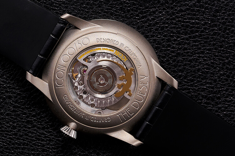 In keeping with the vehicles for which ICON 4×4 have become famous for, this excellent looking Duesey Watch is not some pre-existing timepiece merely with an ICON logo adorned to it – as is the case with a lot of watches of this nature. Rather, it is a painstakingly designed endeavour built from the ground up. It is the result of an untold number of illustrations, models, samples and hundreds of hours of consideration which all combined to create the spectacular watch you see before you.