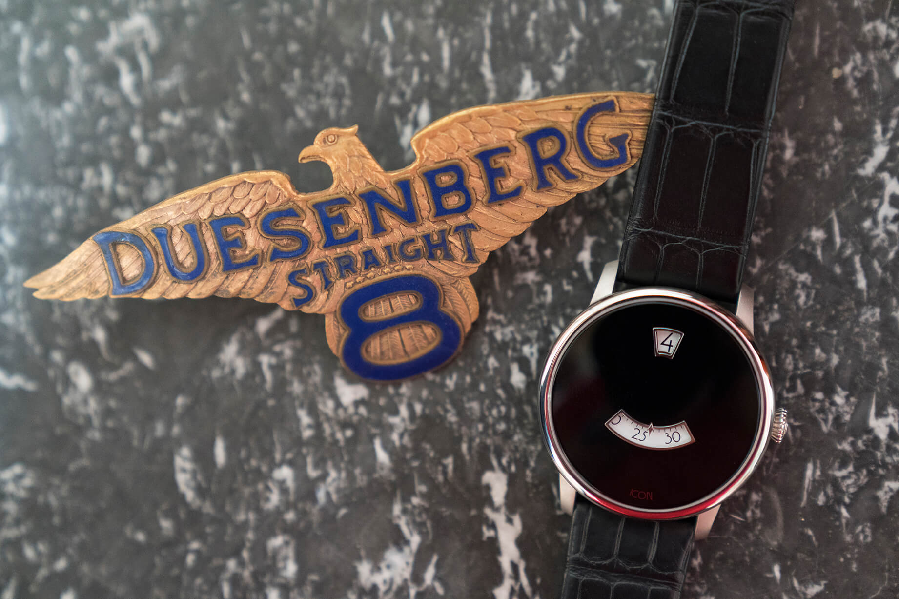 Striking aesthetically, the ICON 4×4 Duesey Watch boasts a unique combination of materials alongside a vintage Jump Hour display with wandering minutes for a truly impressive look and feel. The 42mm ICON Duesey design and rarity is definitely in keeping with Jonathan’s famous ICON custom vehicles which are so sought after the world over and we don’t see things being any different with this exemplary timepiece.