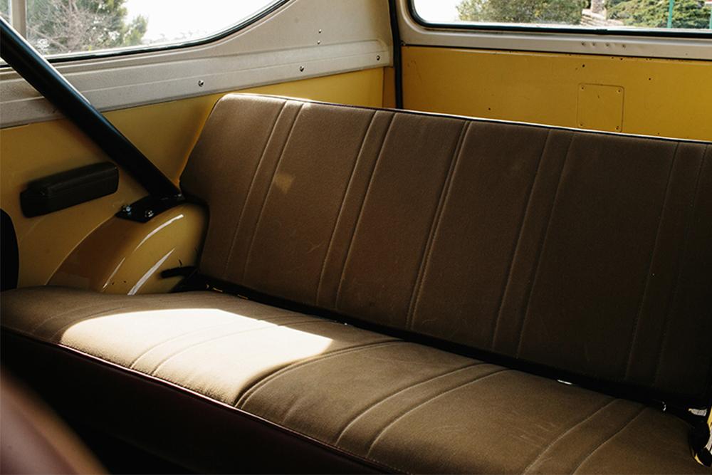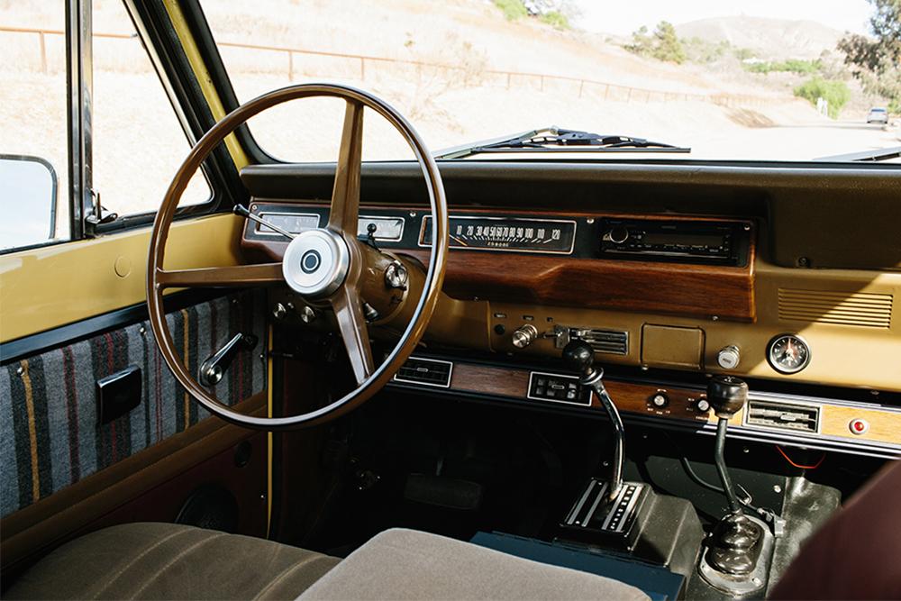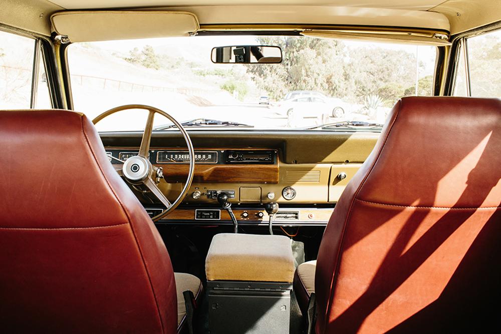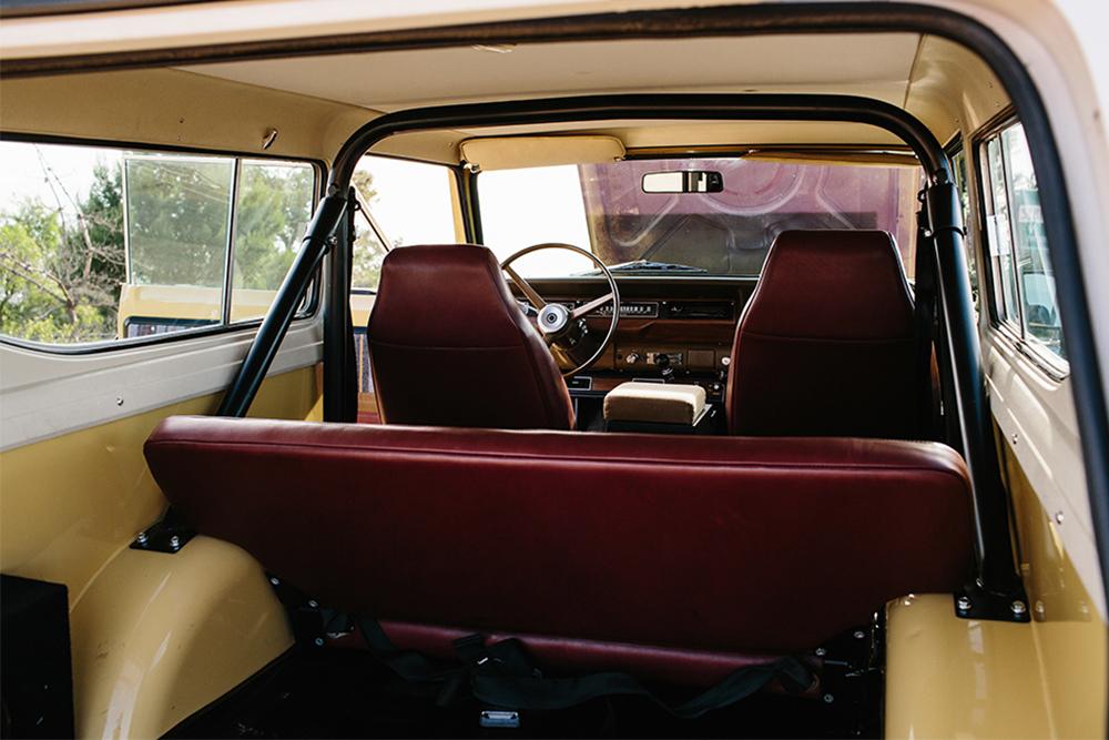 Iron and Resin’s job was to supply the design and materials to make the 1972 Scout II into a stylish and beautiful automobile. The interior features Iron and Resin’s waxed canvas on the seats and Horween leather panels throughout the interior. On the doors is a wool blanket liner material the company uses inside its jackets. The exterior is decidedly vintage with a two tone paint job and classic-looking white wheels.