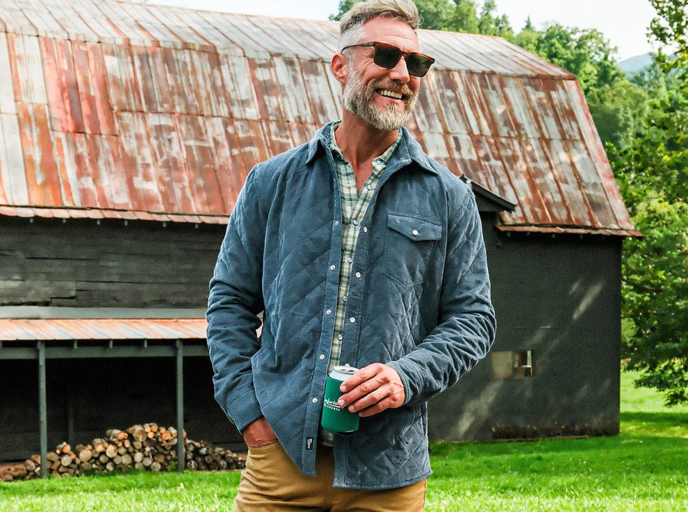 They’ve taken the legendary swagger of their old-school Corduroy Pearl Snap shirt and married it perfectly with the insulation of their Quilted Shacket. The exterior is 100% thick, soft cotton corduroy—pure vintage texture and character. The interior is lined with smooth nylon and pumped with recycled polyester fill, ensuring warmth without the bulk of a proper coat.
