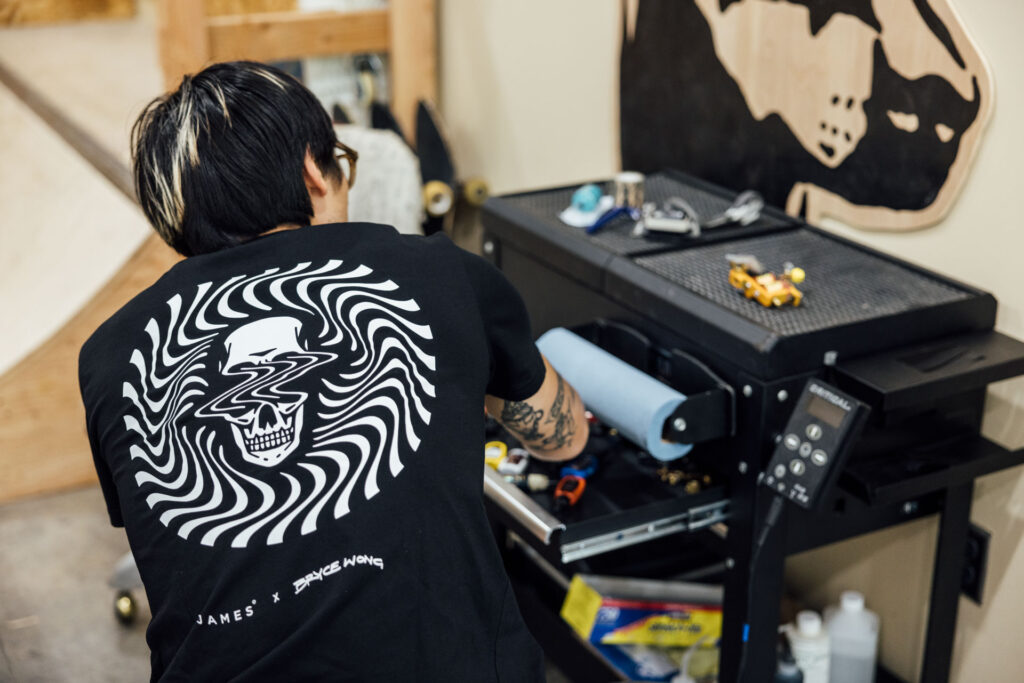 Born in Southern California and currently residing in Portland, Oregon, Bryce Wong is a distinguished graduate of the University of Cincinnati College of Design, Architecture, Art, and Planning (DAAP) who is recognized for his modern manipulations of pop culture icons. Taking inspiration from street art while skateboarding, Bryce’s signature wavy designs reflect his commitment to analogue experiences, which includes painting, hand illustration and tattooing, alongside digital mediums.