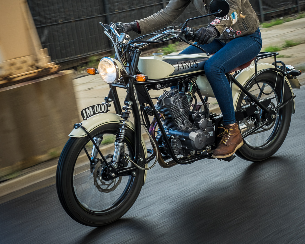 The sprung leather solo seat, hand-welded aluminum tank, and lack of modern features and amenities can give you an idea of what it was like to ride motorcycles back before fuel injection, ABS, and extremely complicated, high-displacement engines. In essence Janus gives you a time machine. It gives you the ability to enjoy vintage motorcycle characteristics without the unreliability and headaches that often come with vintage bikes.