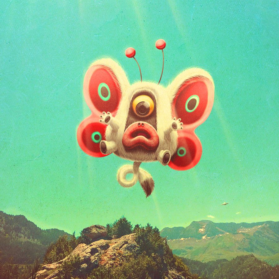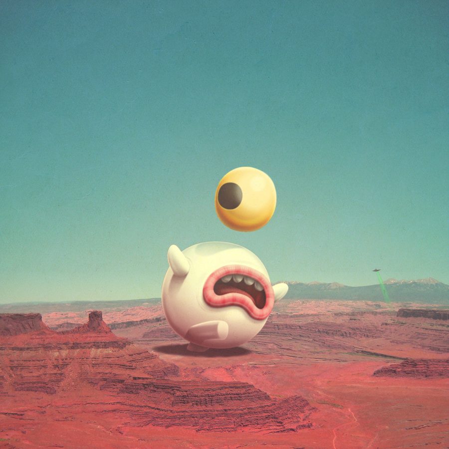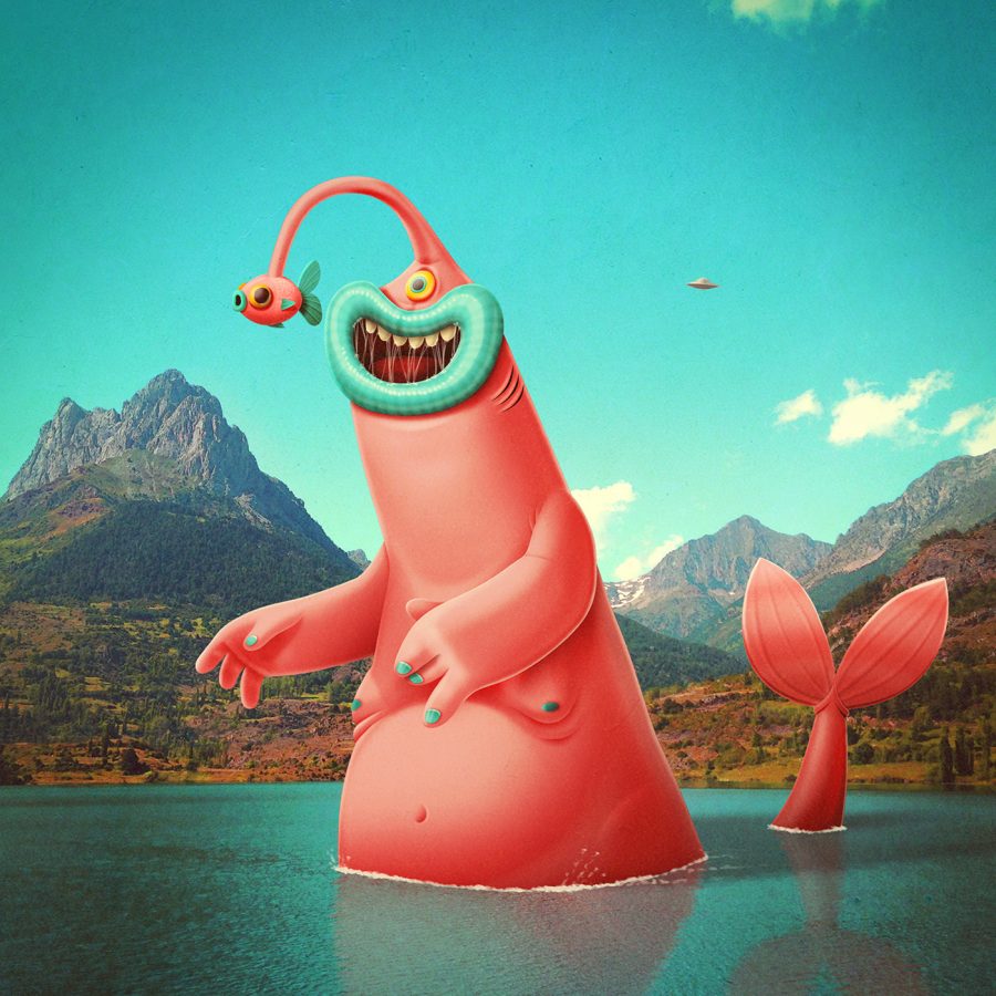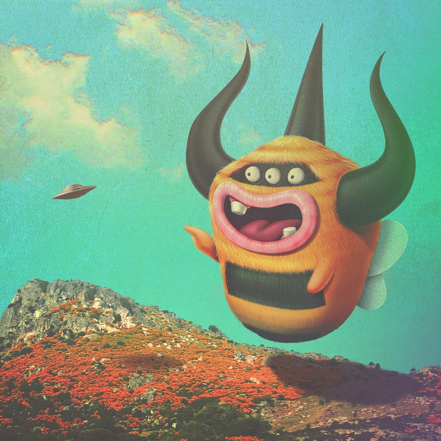 Each of these eye-catching New Monsters from Juan Carlos Paz have been supplanted into familiar looking landscape terrains and this adds a jarring sense of realism to the illustrations offset by just how bonkers the illustrator’s creations are. These include desert terrains, forests, mountains and lakes to name but a few and there is often some sort of UFO vibe thrown into the mix as well which adds yet another awesome aesthetic element to proceedings.
