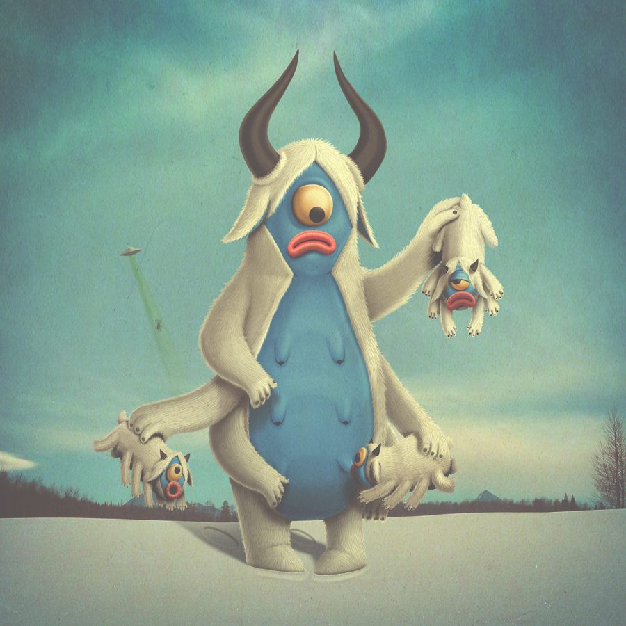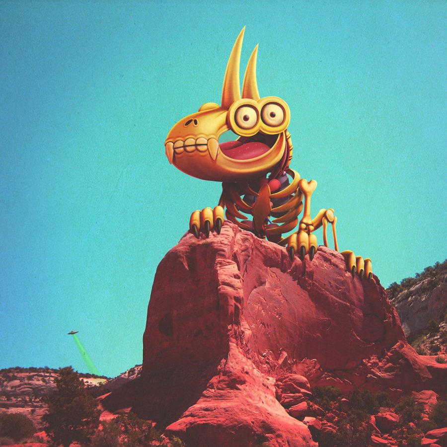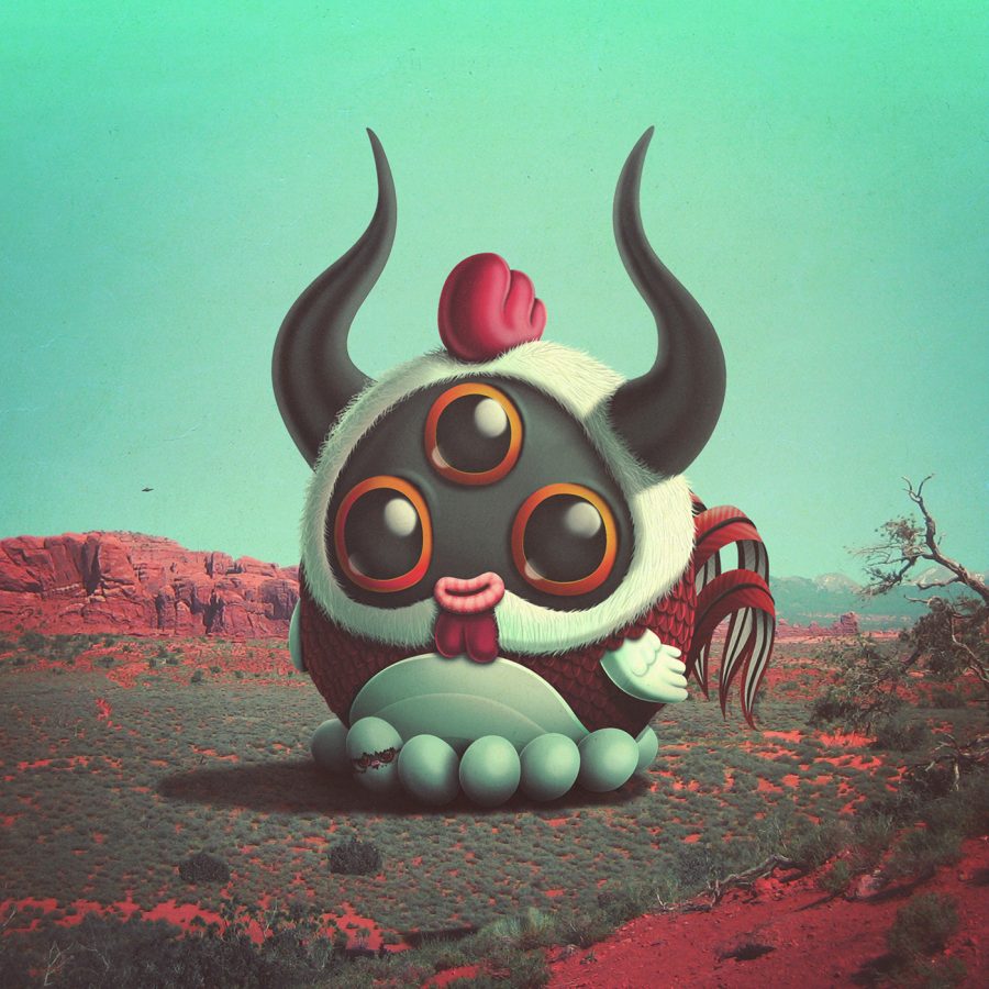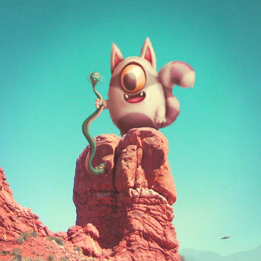 Each of these eye-catching New Monsters from Juan Carlos Paz have been supplanted into familiar looking landscape terrains and this adds a jarring sense of realism to the illustrations offset by just how bonkers the illustrator’s creations are. These include desert terrains, forests, mountains and lakes to name but a few and there is often some sort of UFO vibe thrown into the mix as well which adds yet another awesome aesthetic element to proceedings.