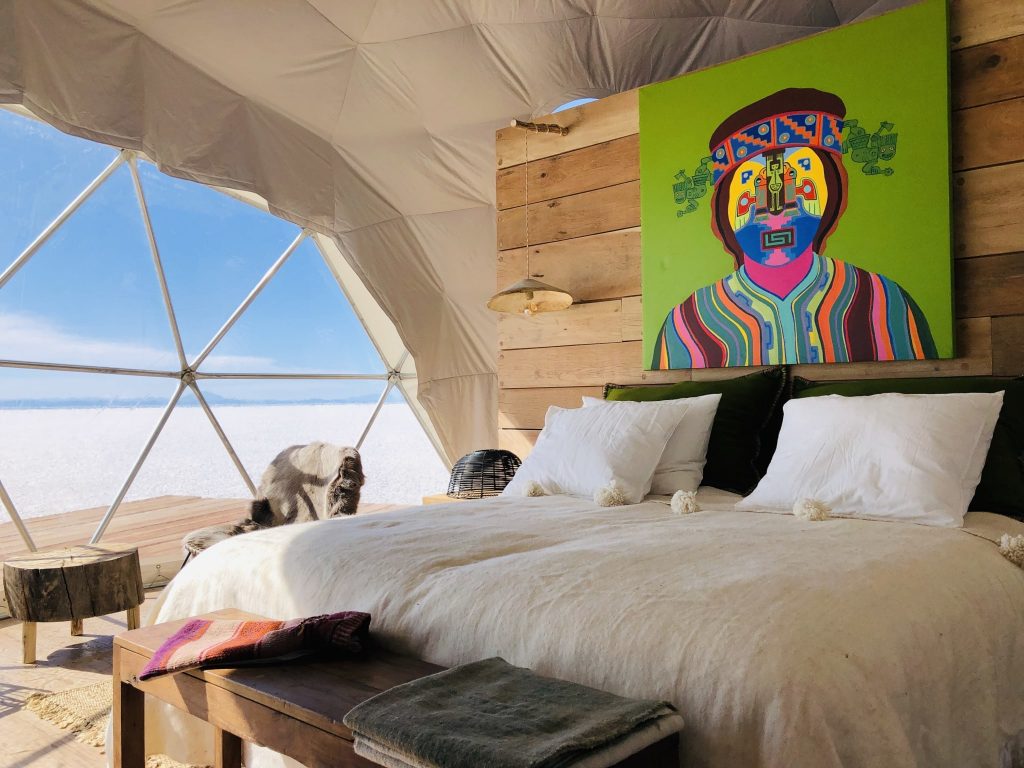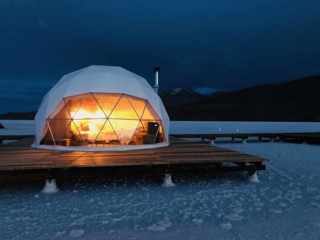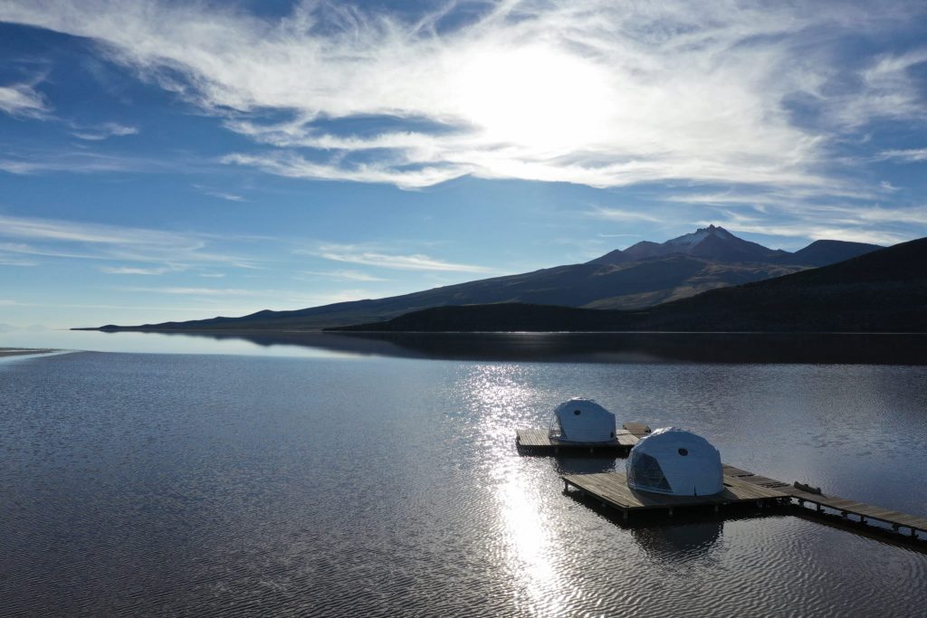 The focus of the Kachi Lodge is comfort and the cleverly designed interiors meet the great outdoors: from the warmth of the dome-shaped suite, the salar unfolds like a mirror in the rainy season, or crystalline landscapes the rest of the year. The owners strive to push the boundaries of sustainable travels as far as they’ll go with cutting edge green infrastructures, commitment to local culture and communities are a daily reality. The Lodge is in operation all year round and they have teamed up with the best in the region: unique food prepared by Bolivia’s most celebrated chef, one of a kind land art with Gastón Ugalde and an endless list of bespoke activities to keep you entertained during your stay.