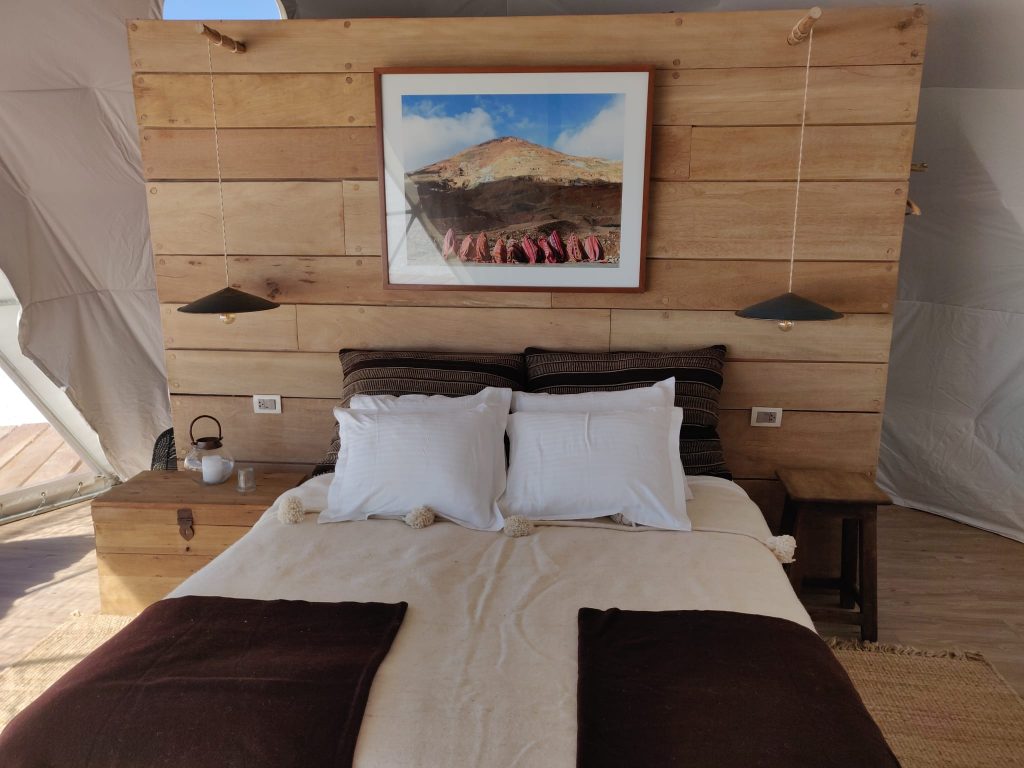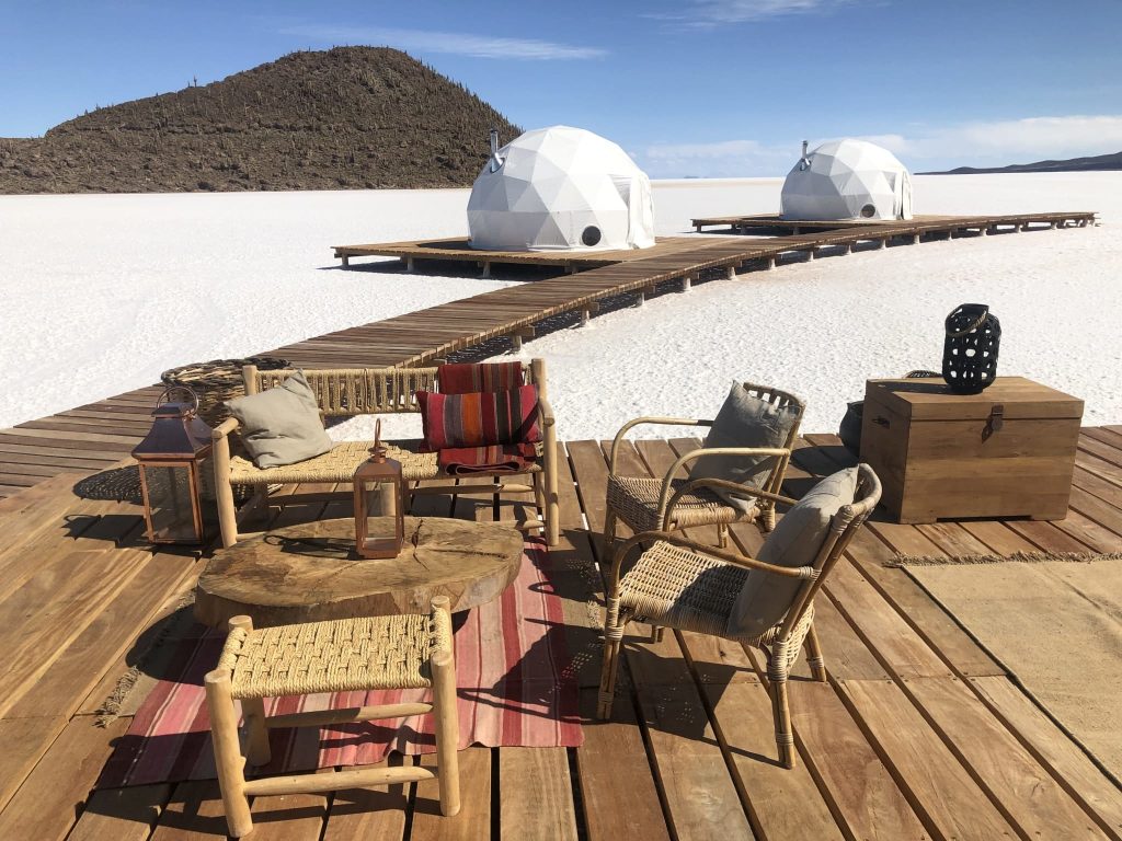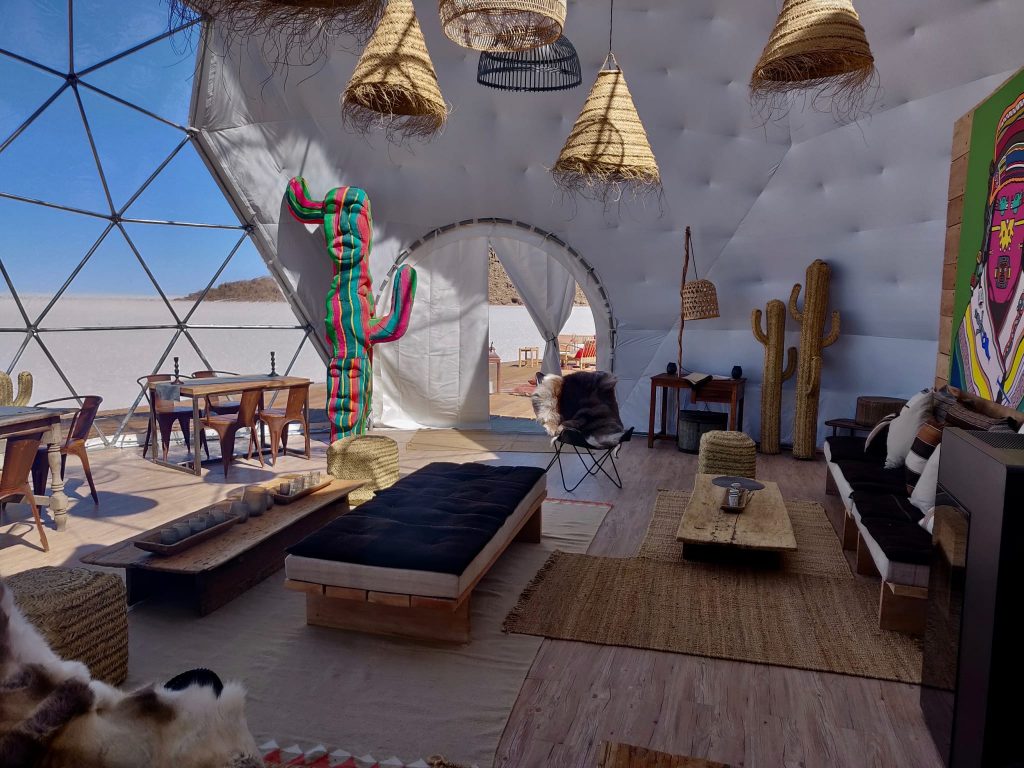 With a wonderful feeling of remoteness and truly being at one with the great outdoors, the Kachi Lodge offers a stay unlike any other. There are six dome suites to stay in so it is a highly intimate resort where the focus is on providing stellar service in either more stunning surroundings. The interiors of the domes have a bohemian chic atmosphere: sourcing sustainable objects. In each dome, large bay windows offer panoramic views on the Salar and its star-studded sky. Lit up at night, they are one of the coolest, and most surrealist viewing station ever seen in the arid region.
