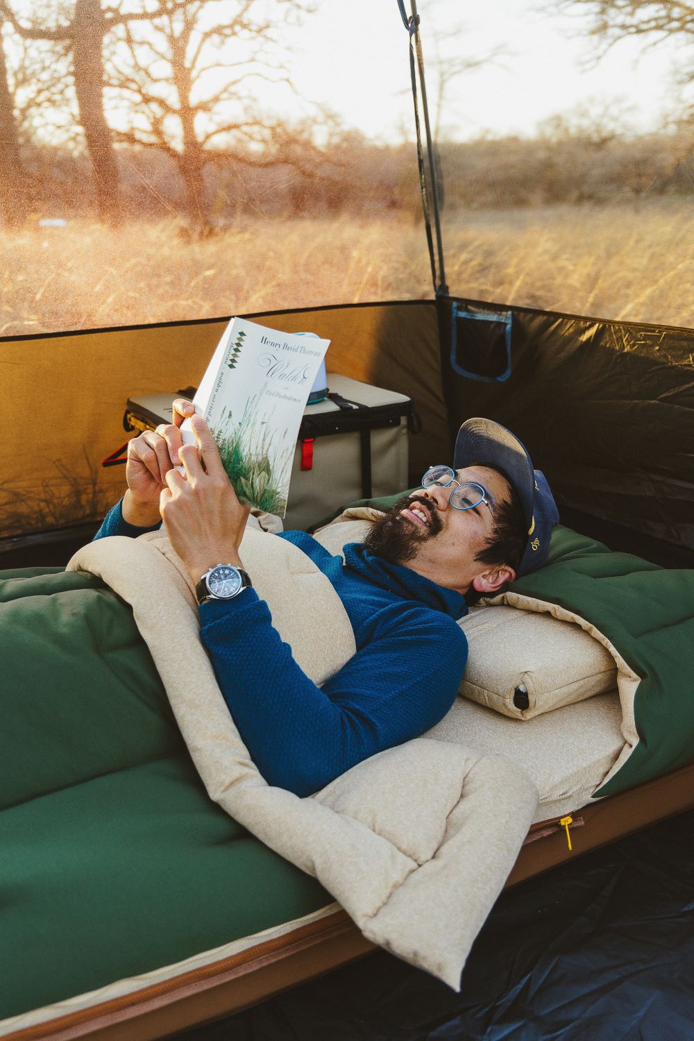 Cleverly designed, the Ursa Sleep System from Kammok takes all the guesswork out of comfortable camping so you can experience all the wonders of camp and really enjoy a peaceful night of sleep beneath the stars. Its Base Pad boasts 4 inches of self-inflating foam and delivers insulation and cushioning for a great night’s sleep. It’s so comfortable, you’ll soon forget you’re sleeping on the ground.