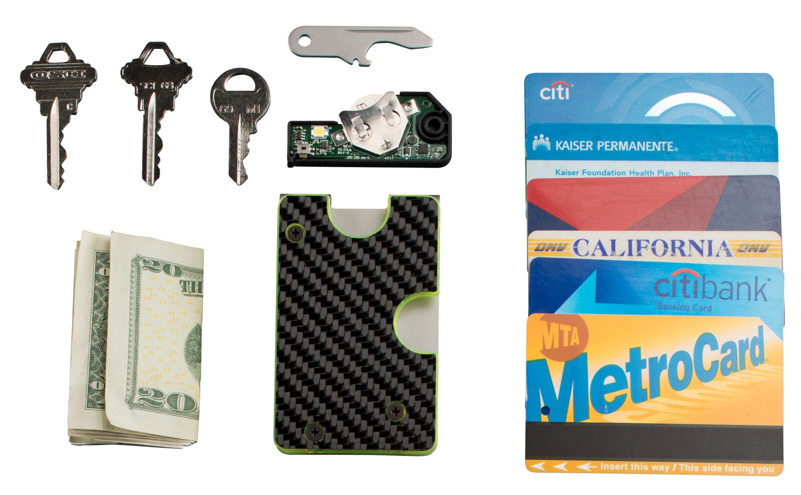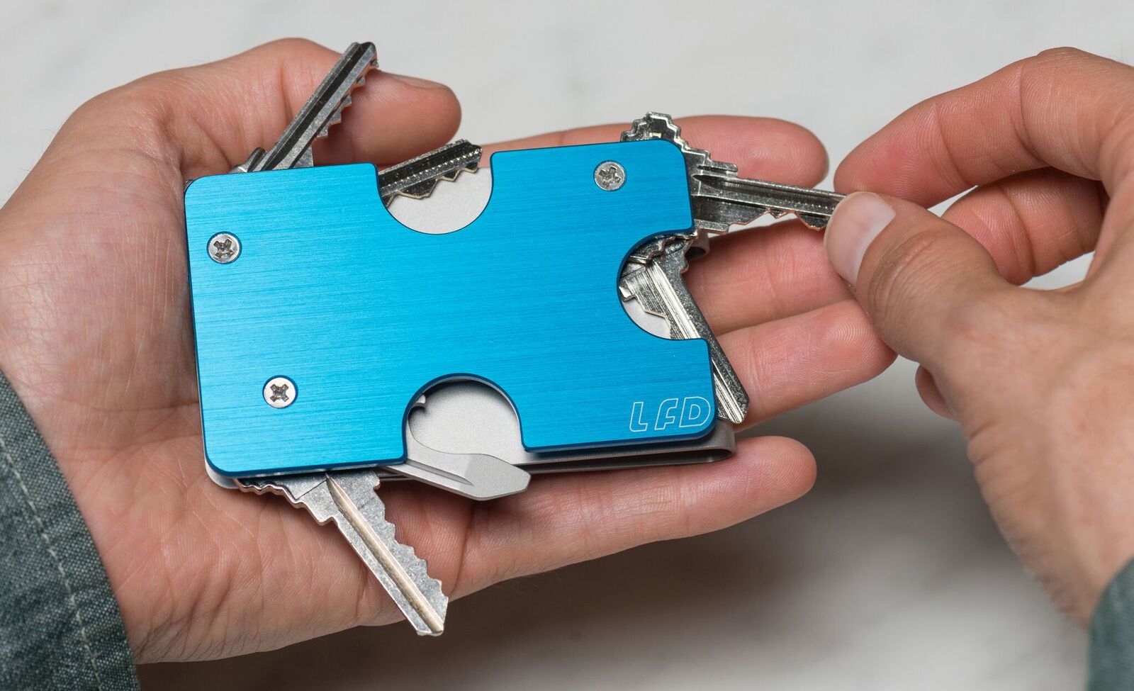 The slimline dimensions of the KeyClip Wallet 2.0 are mighty impressive to say the least and each one is barely bigger than a credit card and as thin as nine millimetres so you’ll barely even notice it in your pocket such is its lightweight nature. One of the most attractive features of this design is the built in omnidirectional flashlight which, for anywhere who is accustomed to trying to unlock their door in the dark, will definitely appreciate.