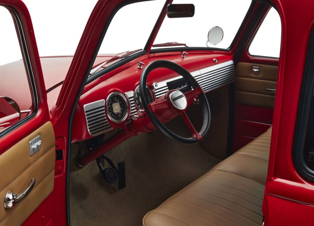 Combining tradition and technology to create a truly one-of-a-kind EV, the Chevy 3100 comes with custom leather upholstery, a bench seat with headrests and centre seating, EV-specific original style gauge cluster, rotary gear selector, touchscreen media centre, wireless Apple CarPlay and Android Auto, wireless charging phone dock, 3 speaker sound system including subwoofer.