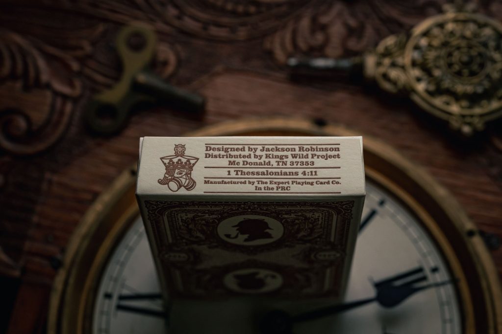 Robinson redesigned this early kickstarter deck that takes its design inspiration from the books and illustrations from the original The Strand Magazine Publication with new multi-coloured foiling and all-new artwork that is a knowing nod to the original publications. This deck of playing cards is sure to be a new favourite and a must-have for your collection.