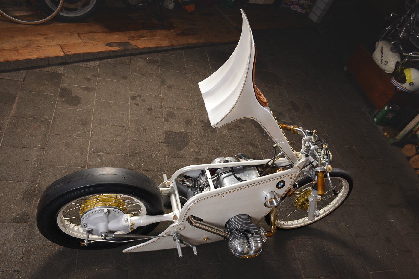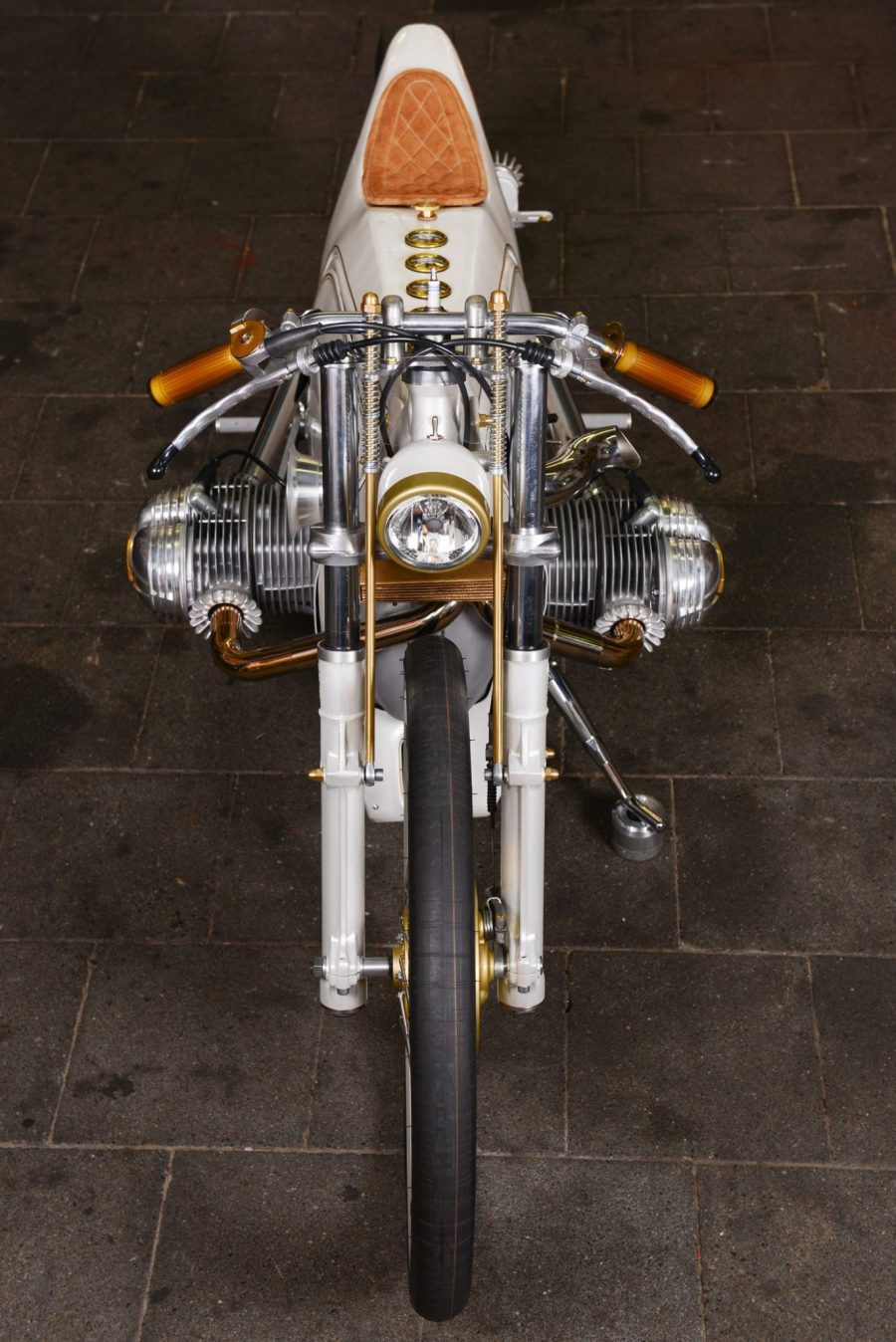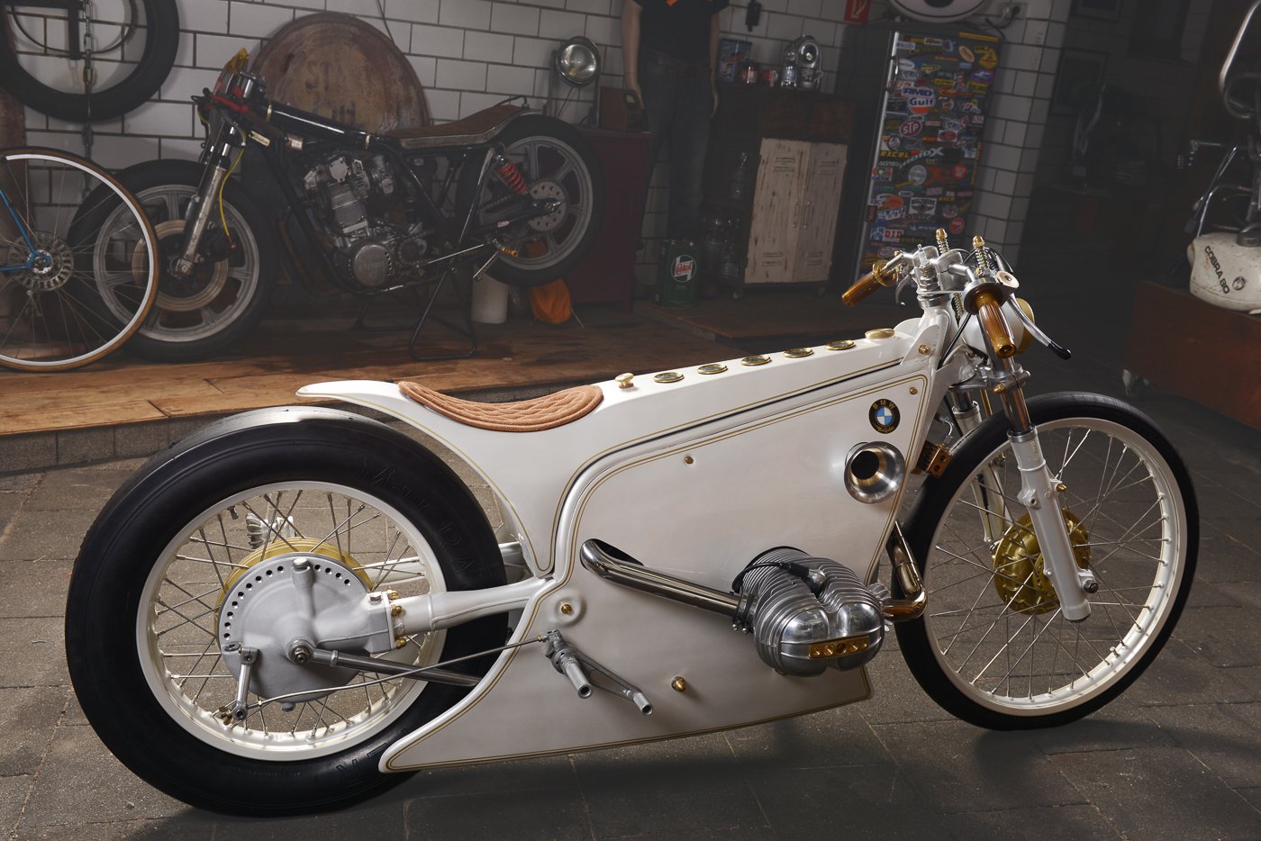 When you first lay eyes on this White Phantom Motorbike from Kingston Customs you’ll perhaps find it hard to believe that the finished product stemmed from an unremarkable but steadfast BMW R80RT donor bike to become the glorious machine that you now see before you. Boasting a 798cc boxer engine that packs quite a punch and a single, horizontally mounted, turbo which is spooled-up by a short pair of headers, this breathtaking machine rides almost as fantastically as it looks visually.