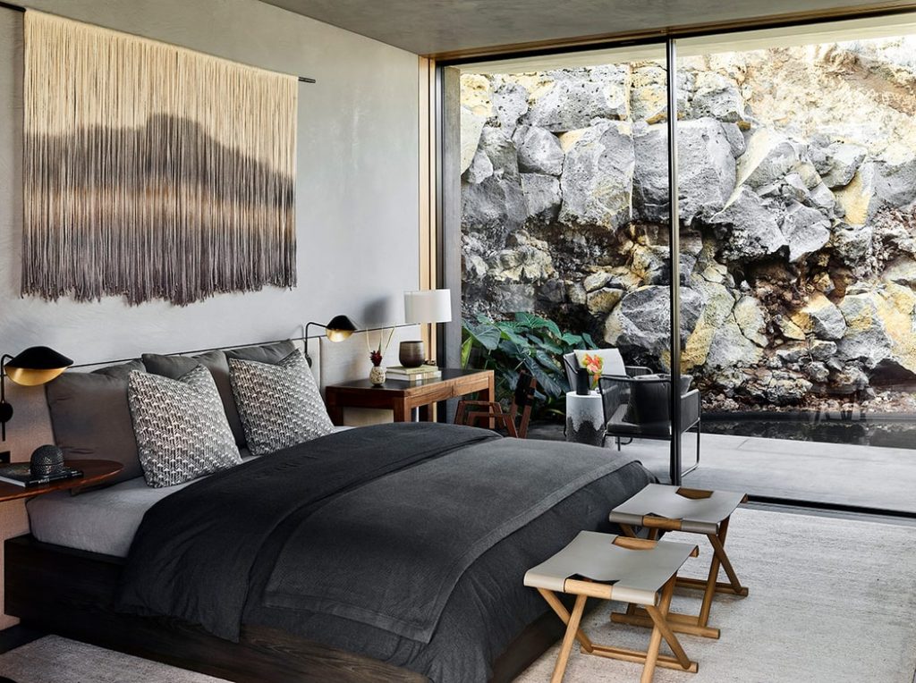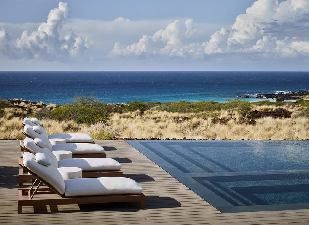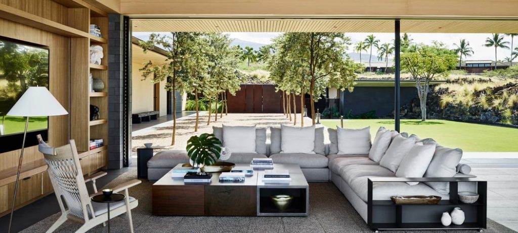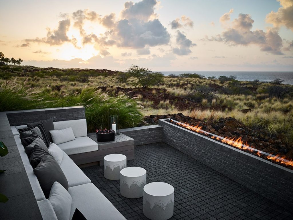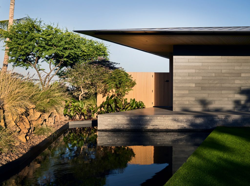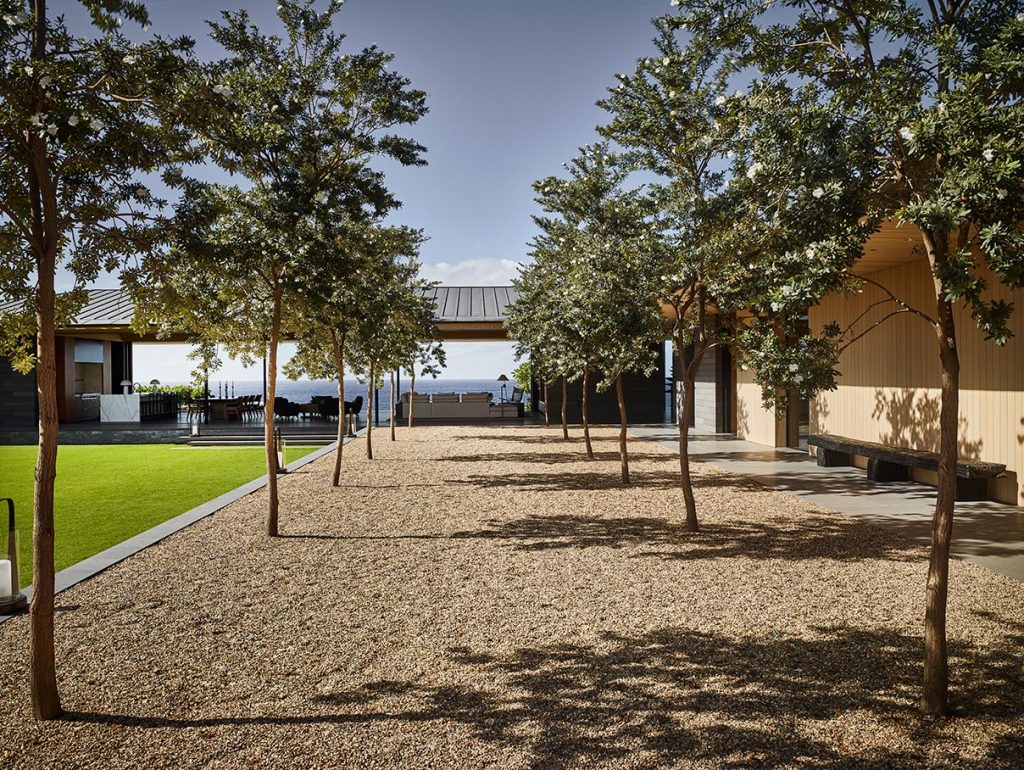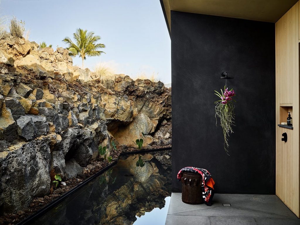 Merging the lines between the inside and outside of Kua Bay House is the courtyard which is framed by a raised tree bosquet and lava outcrops which are brought to life by a number of reflecting ponds. The courtyard serves as a private gathering space which is set apart from the trade winds where guests can take in and appreciate the views of the mountains and the sea.