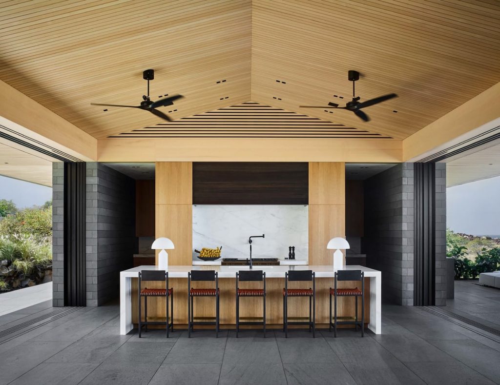 Kua Bay House from Walker Warner Architects is positioned along a rugged, jaw-dropping stretch of coastline and really embraces the spirit of Mauka-Makai – which is the symbolic flow of lava from mountain to sea -through its direct connections to the volcanic landscape and glorious and majestic vistas of the Pacific Ocean.