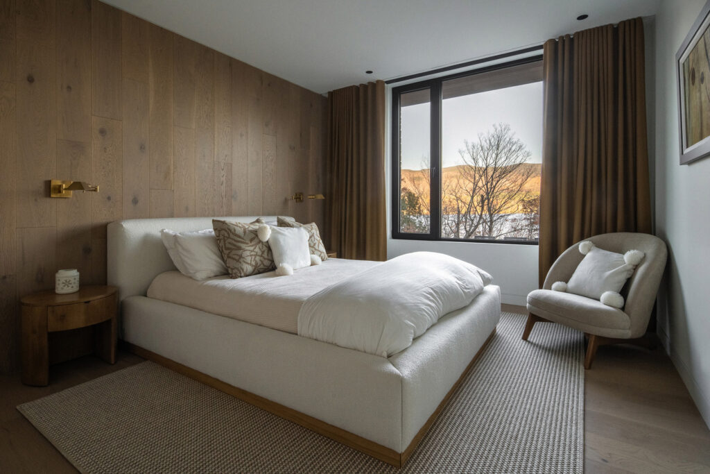 Building on such a challenging site meant literally blasting through rock, but MU Architecture, ever resourceful, repurposed much of that material for landscaping and retaining walls. The result is a home that feels intrinsically connected to the earth, with lush natural vegetation encouraged to reclaim its rightful place. Even the local wildlife, particularly the remarkably unafraid deer, seem to approve, roaming freely as if inviting interaction. With strict environmental regulations in place, including a ban on visible exterior lighting, La Flèche truly lives in harmony with its wild neighbours.