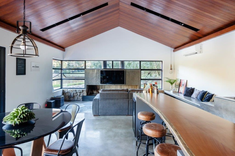 The Lake House Retreat has a very cabin-esque vibe to its design which immediately draws the eye and resonates with our own particular architectural sensibilities here at The Coolector. This first class piece of design is going to appeal to those with a love for entertaining, with all its many eye-catching design features carefully considered to maximise its entertaining capacity. It boasts a expansive living area, and this includes a living room, kitchen and dining areas for guests relax and unwind.