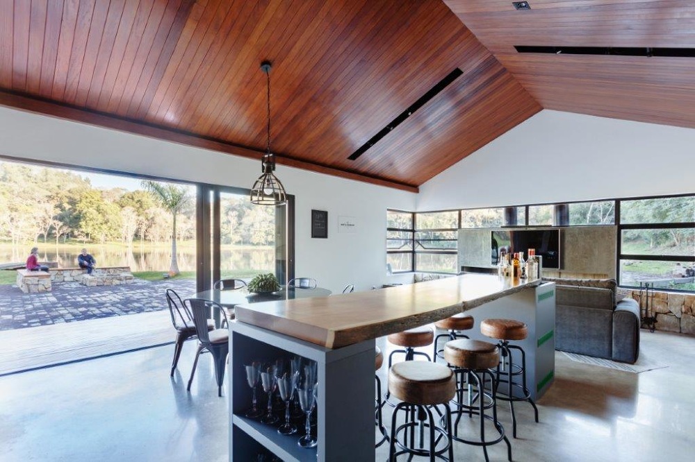 With no bedrooms, with all the space dedicated towards entertaining, sleep isn’t on the agenda at the Cadi Arquitera designed Lake House Retreat but the attention to detail that has gone into making the most of its top notch location on the shores of an eye-catching Brazilian lake and the interior design is sleek, contemporary and stylish to say the least.