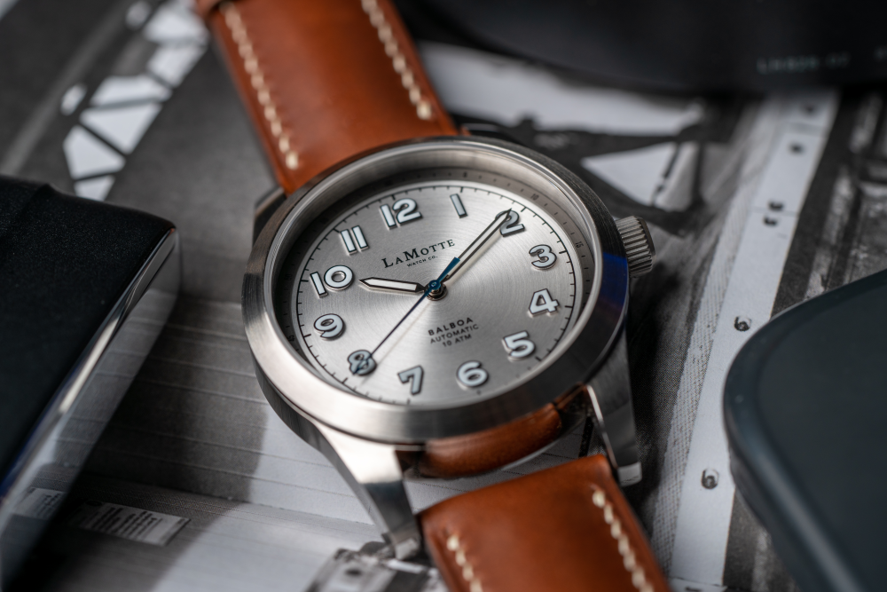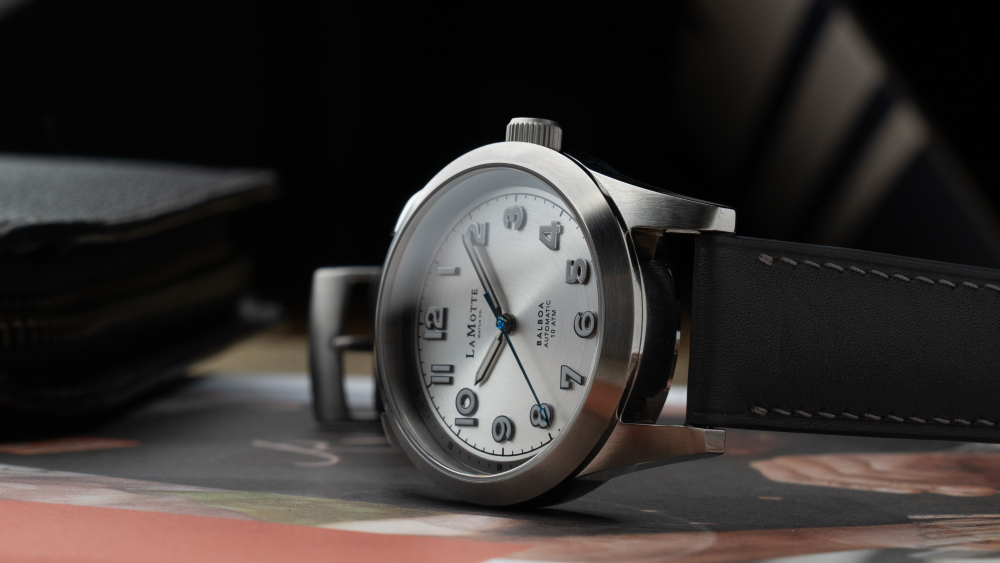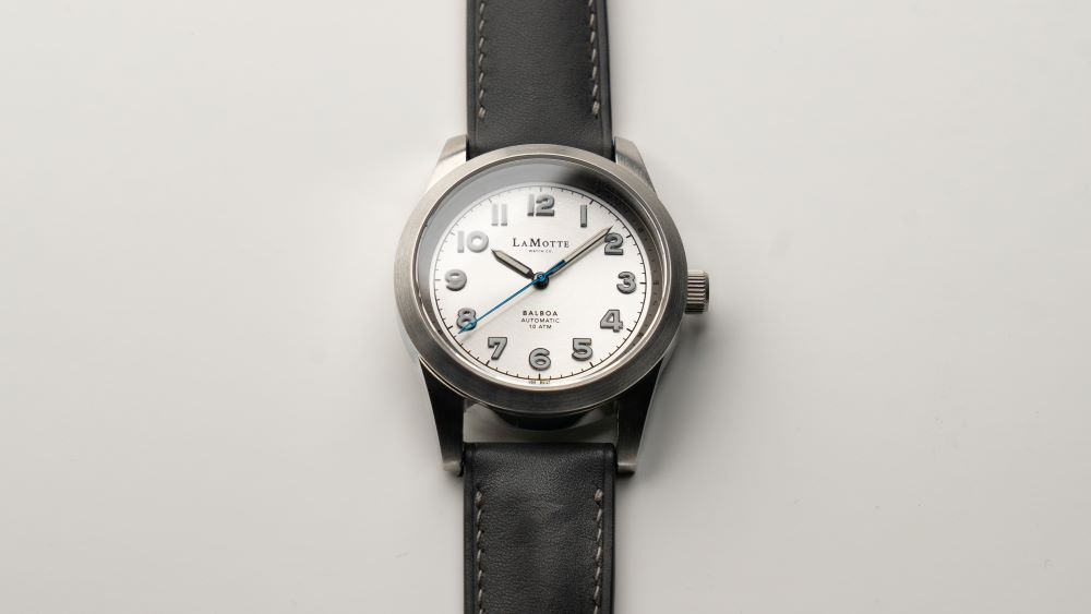 LaMotte Watch Company is understandably delighted to be one of the first to offer the Americhron Automatic movement in their Balboa timepiece. Designed, assembled and tested in the USA using American and internationally sourced parts, it’s a vital step forward in the American watchmaking industry. This movement integrates traditional watchmaking tenets, so while it is a newly designed movement for watch aficionados to appreciate, it can still be serviced by any certified watchmaker. Win, win.
